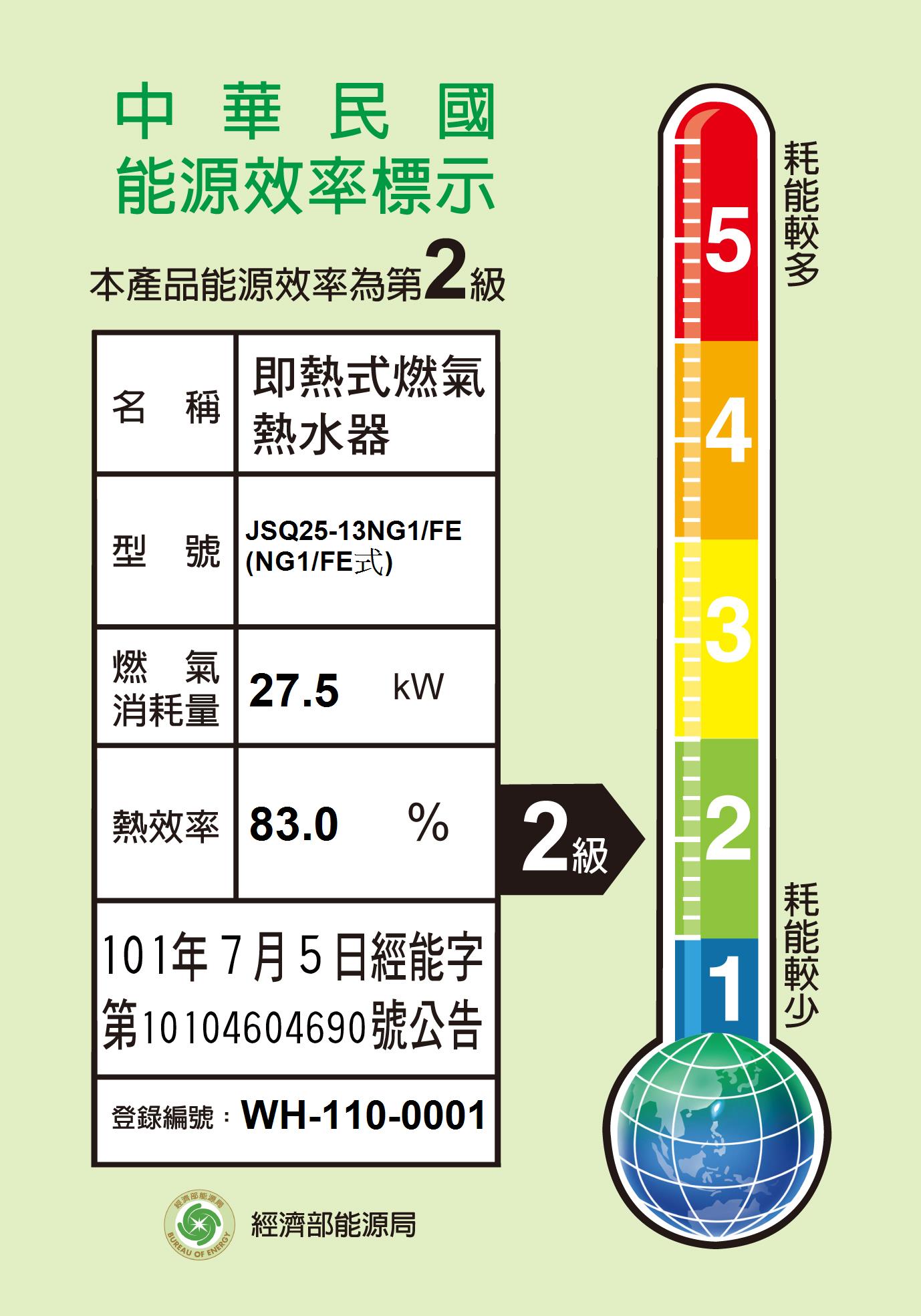 商品特色 • 全新時尚金屬面蓋 • 大視覺好辨識 LED大螢幕時尚美觀,方便好操作! • 觸控操作:輕鬆調節水溫 • 三段火排:根據設定溫度,自動切換火排數,精準控溫 • 富氧藍焰高效燃燒,符合經濟部能源局2級能效 • 下置式直流變頻風機 • 8項安全裝置:防空燒/防爆燃/停電斷氣保護/點火失敗/防假火/水壓保護/防漏電/防雷擊 • 60分鐘自動關機保護 • 2組記憶溫度:一鍵切換浴室模式、廚房模式 • 全機保固三年 品質有保障