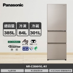 【國際牌】385L 三門變頻左開冰箱 NR-C384HVL-W1 晶鑽白|含基本安裝