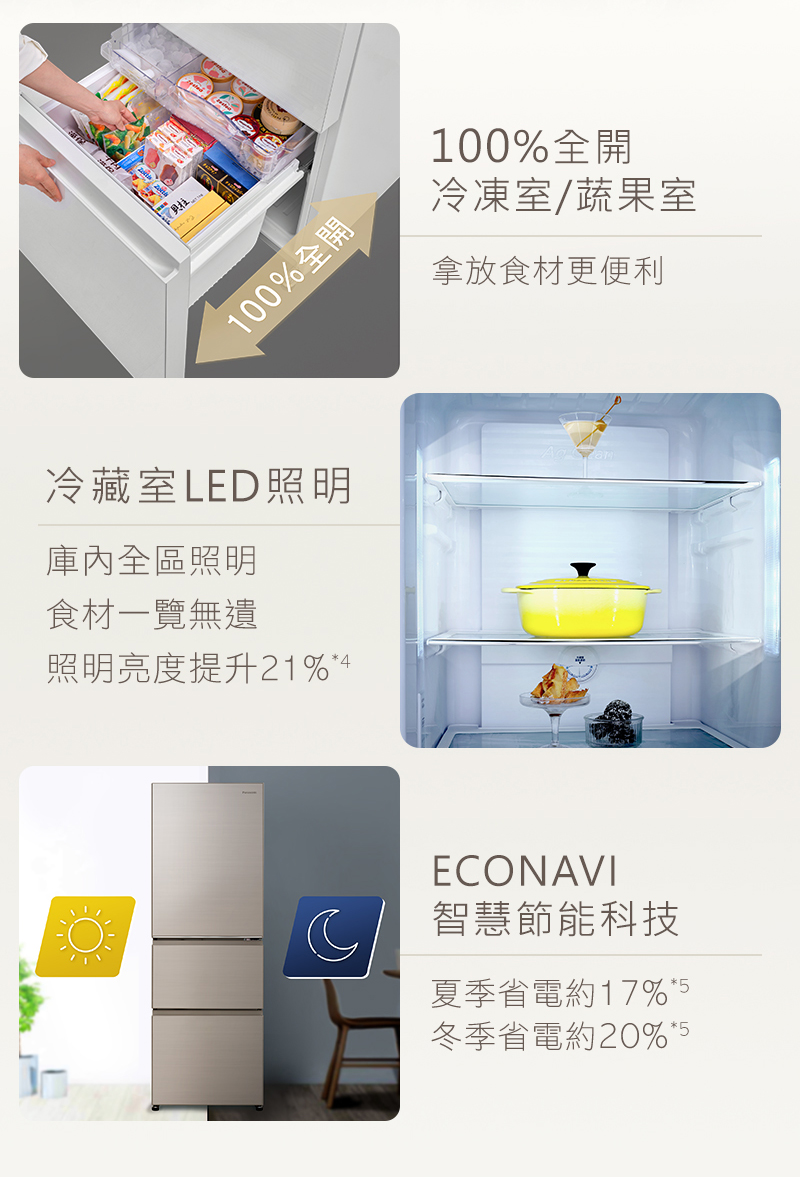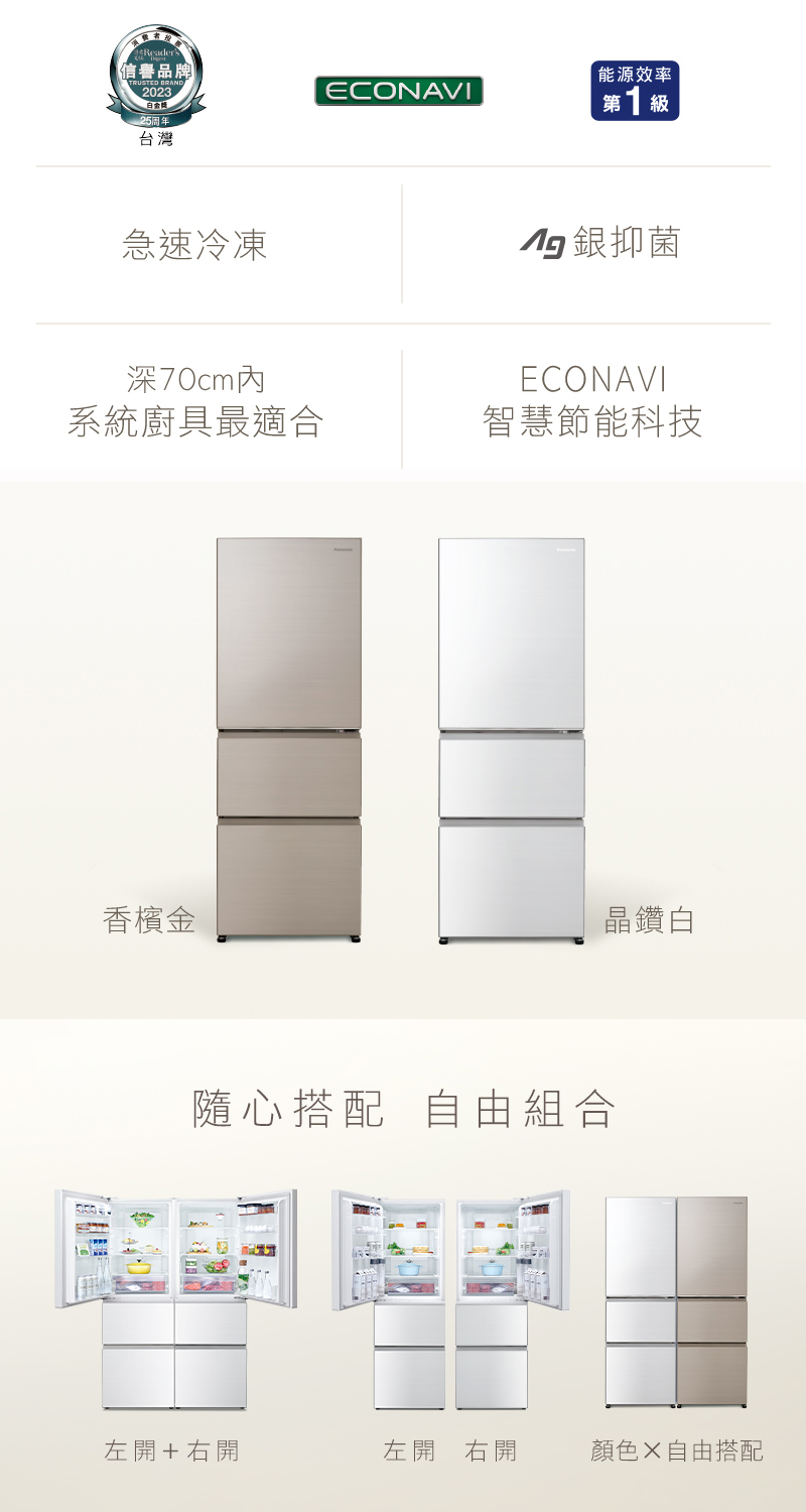 • 特色:100% 全開式抽屜 / 左開冰箱