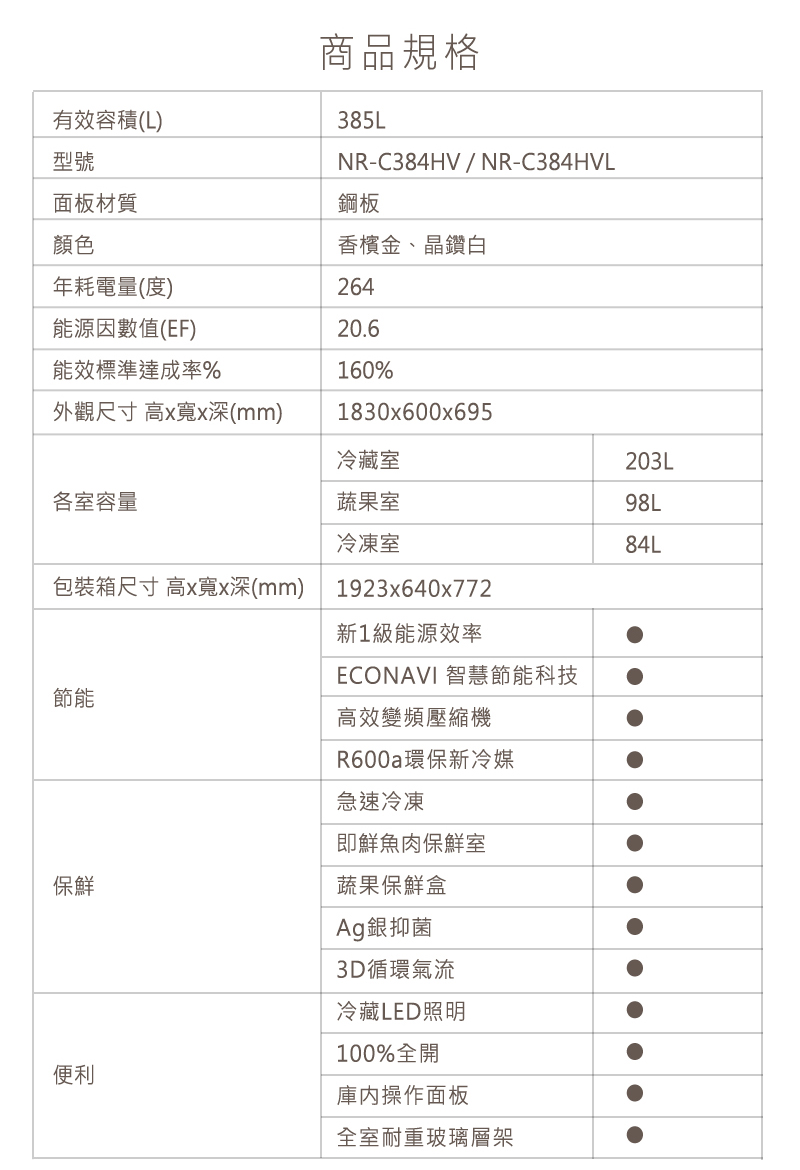 型號NR-C384HVL-W1