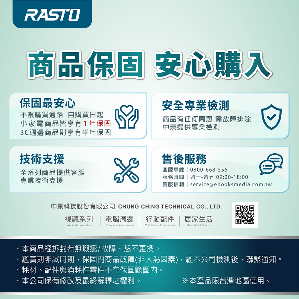 原廠檢測作業約7-14個工作天(不含例假日)。 ★若因退貨商品不完整或配件遺漏,導致需再次派貨運公司需至客戶指定地點收貨情況,客戶需自行負擔此項額外之貨運處理費用。 ★不良瑕疵品品退換經過檢查與測試之後,若發現商品本身並無瑕疵,消費者仍必須支付所有發生之相關費用。
