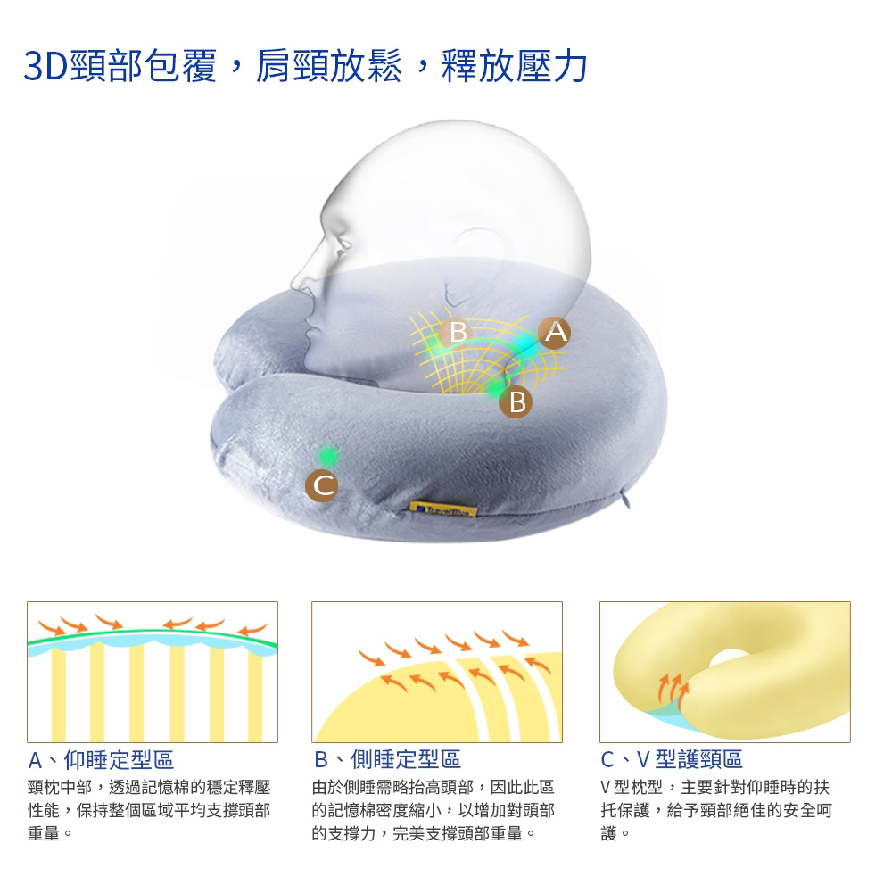 【Travel Blue 藍旅】TB232 記憶棉旅行頸枕 灰色