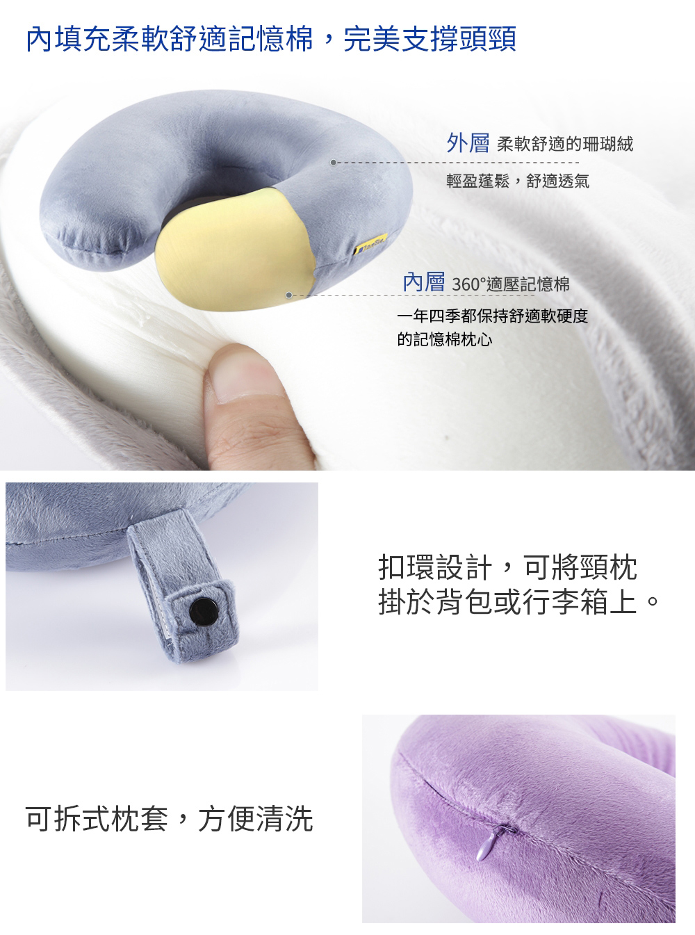 • 內填充柔軟舒適記憶棉,完美支撐頭頸。
