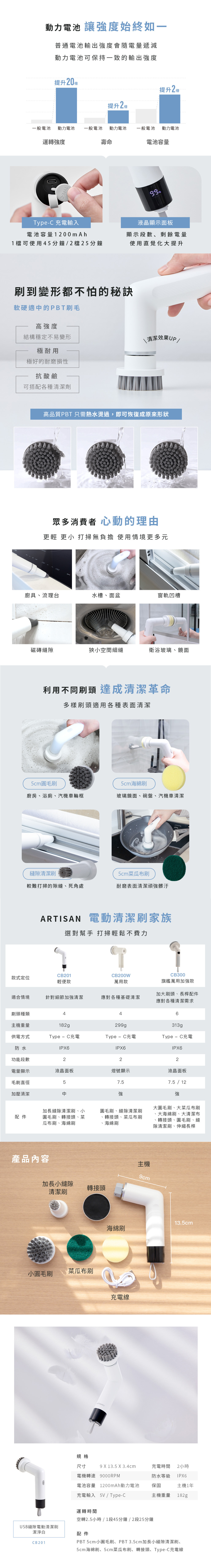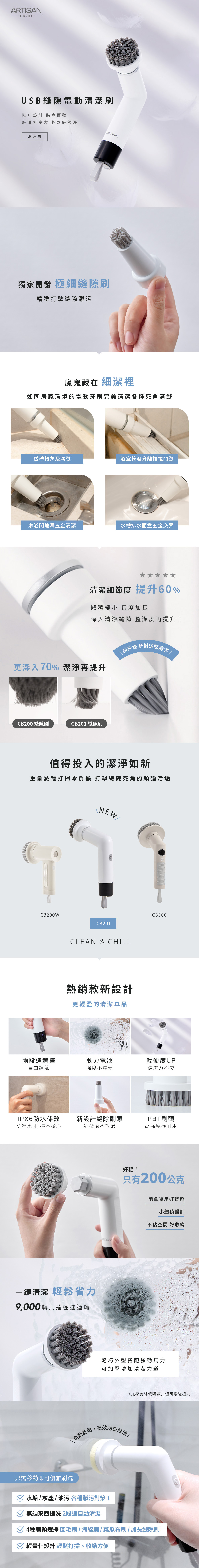 【ARTISAN|奧堤森】USB縫隙電動清潔刷/潔淨白 CB201