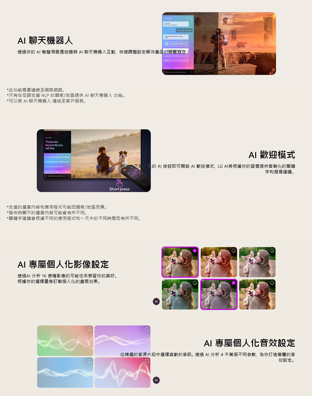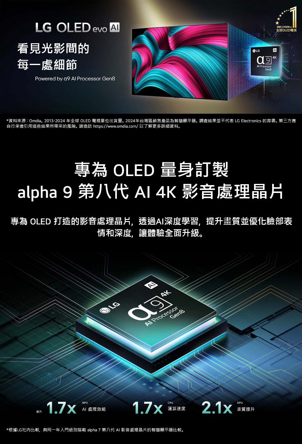 • 特色:智慧增亮引擎提升亮度/AI 運算/alpha 9 第八代 AI 4K 影音處理晶片
