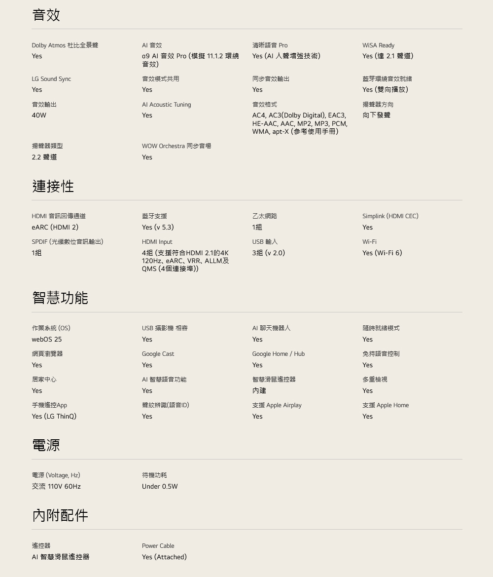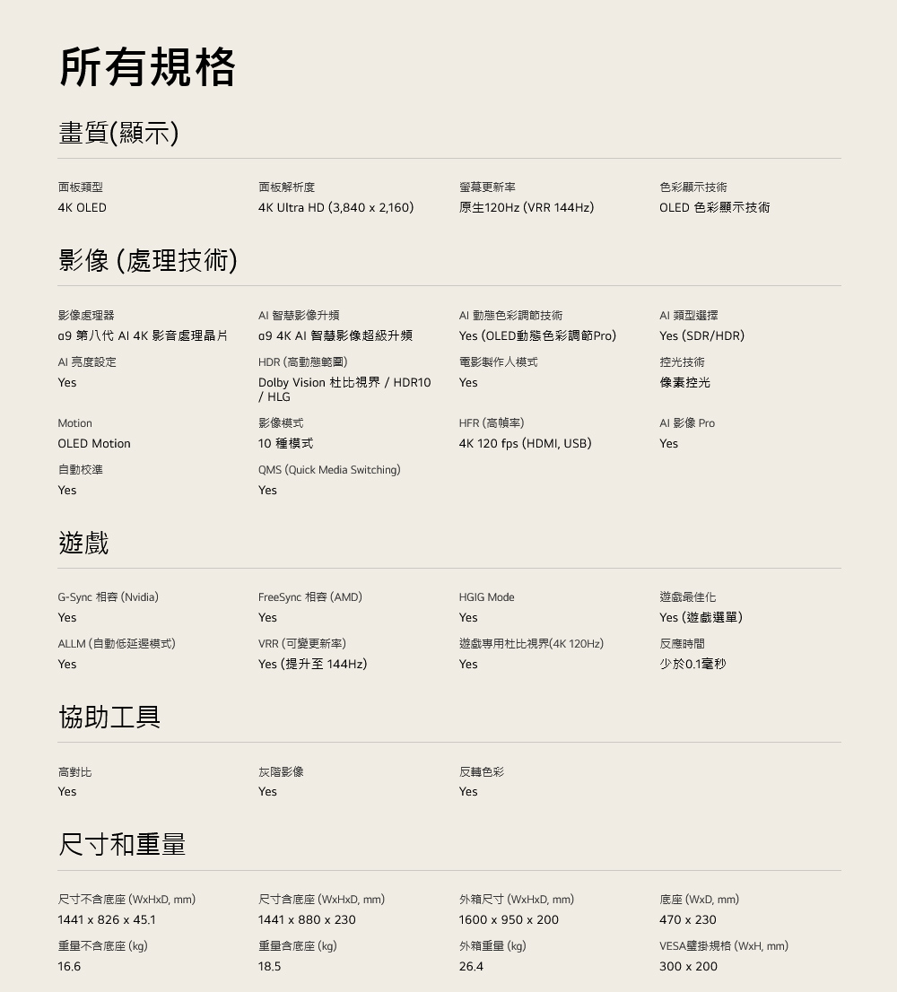 • 特色:支援杜比視界及全景聲 /OLED 120Hz