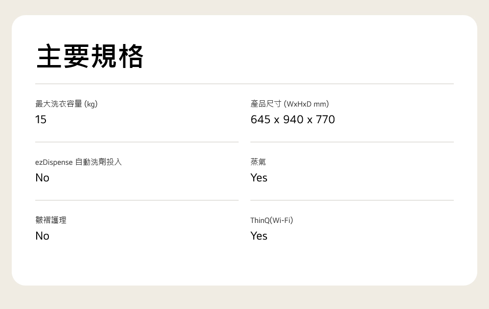 LG 樂金|WD-S15TBD 15公斤 蒸洗脫烘滾筒洗衣機 冰瓷白|含基本安裝