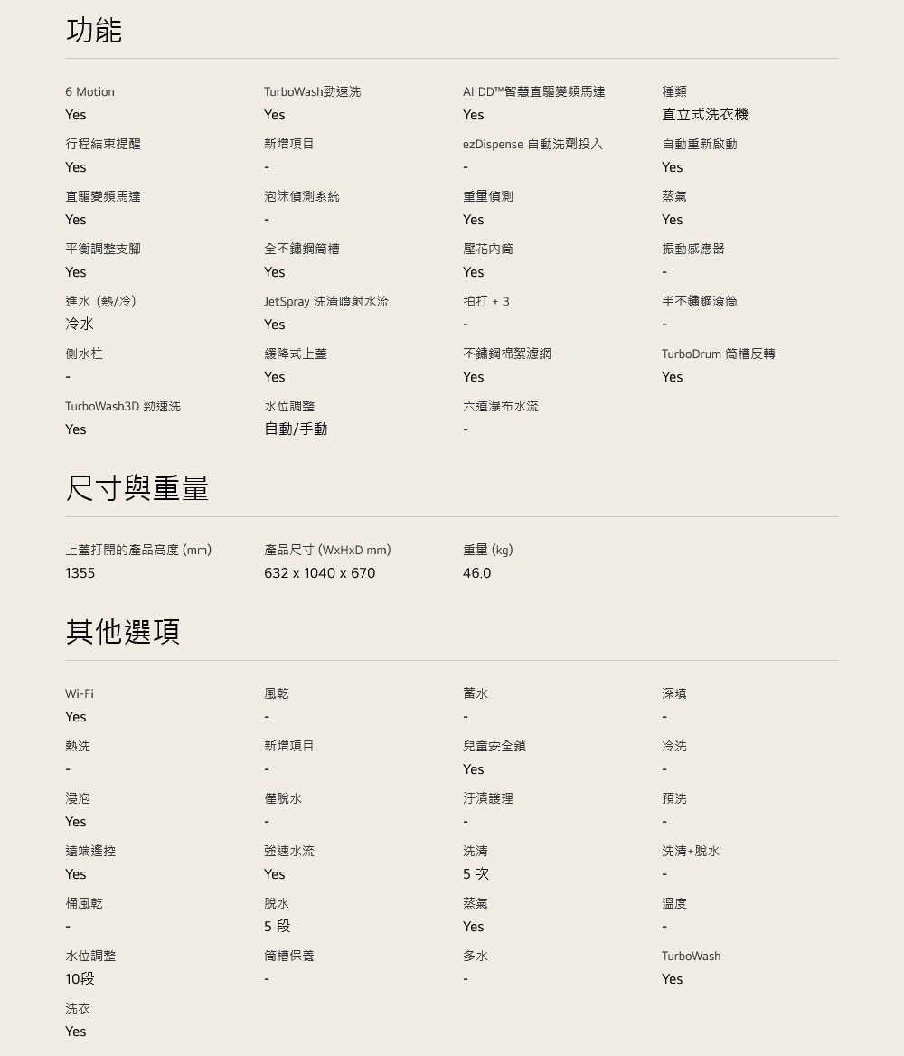 • 特色:AI DD 智慧直驅變頻馬達:AI 智慧感測 提供最適洗程