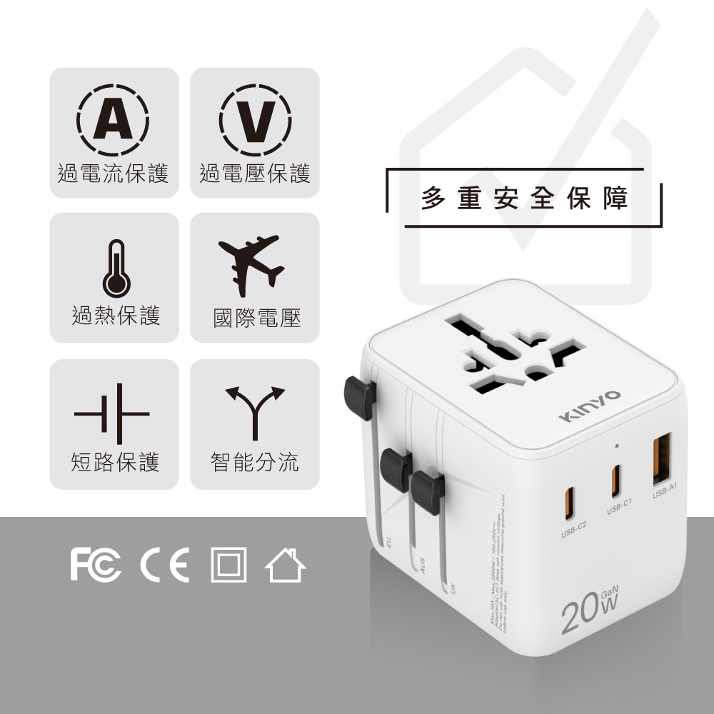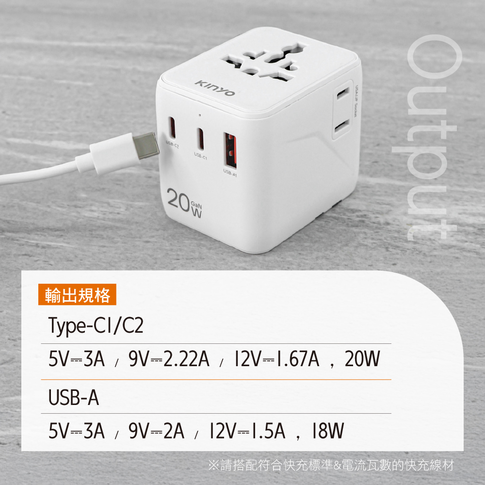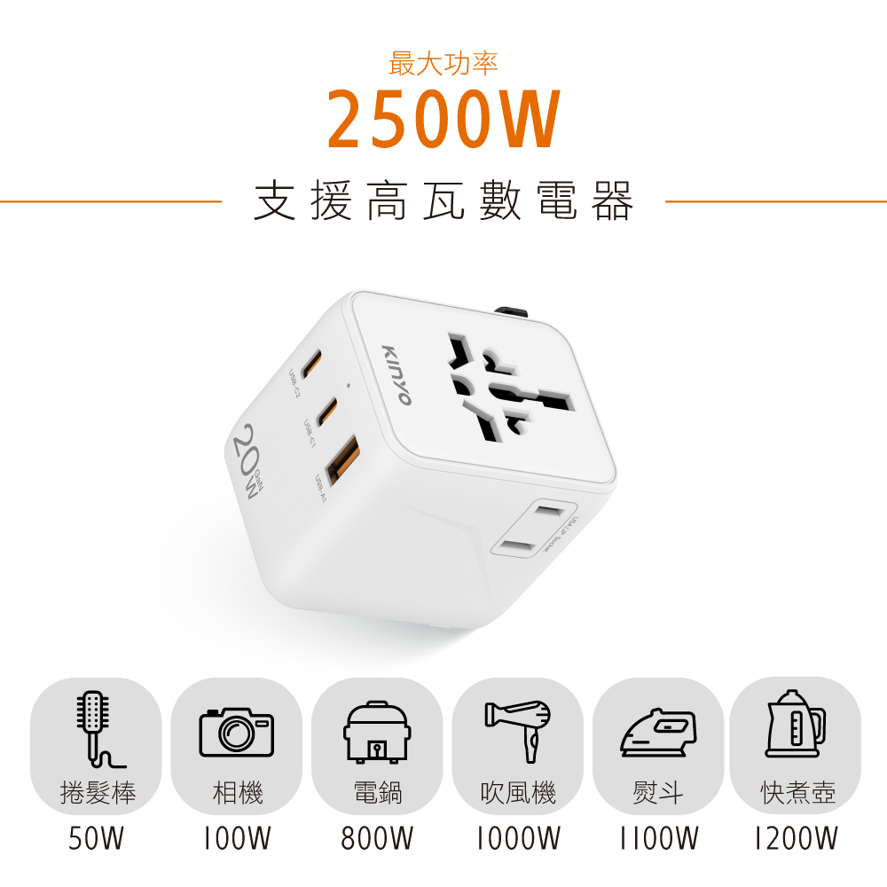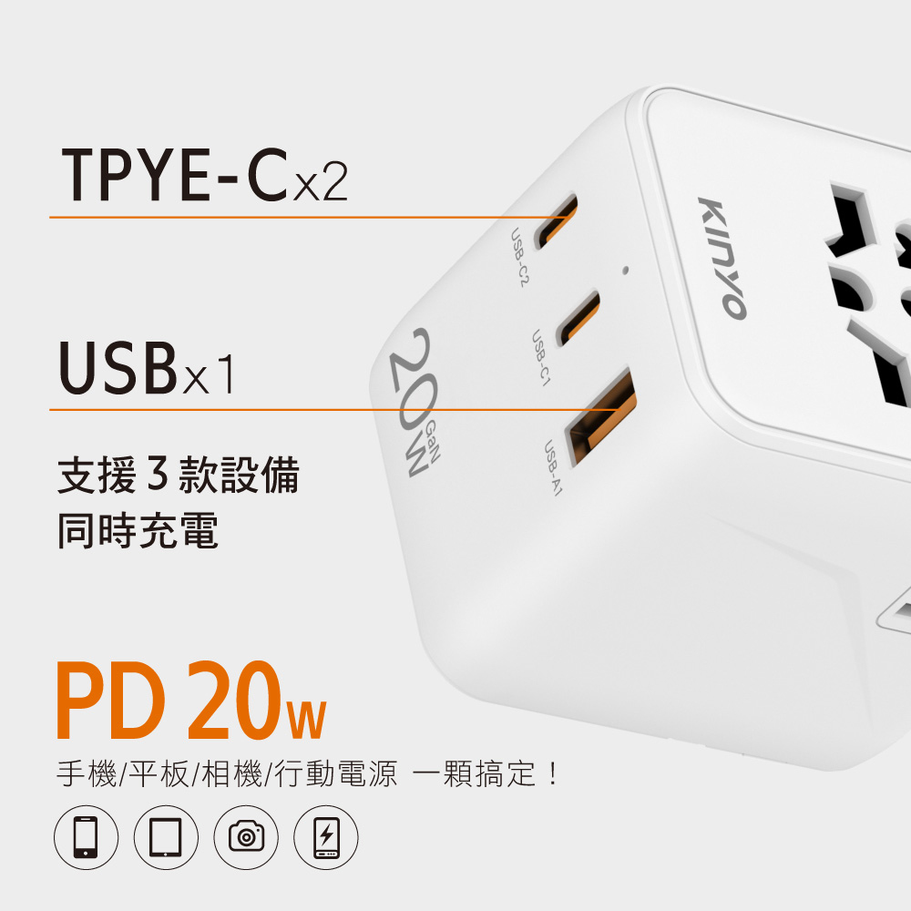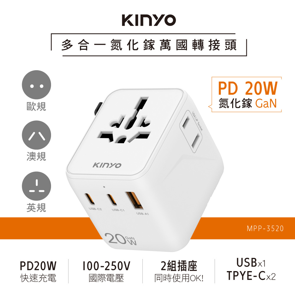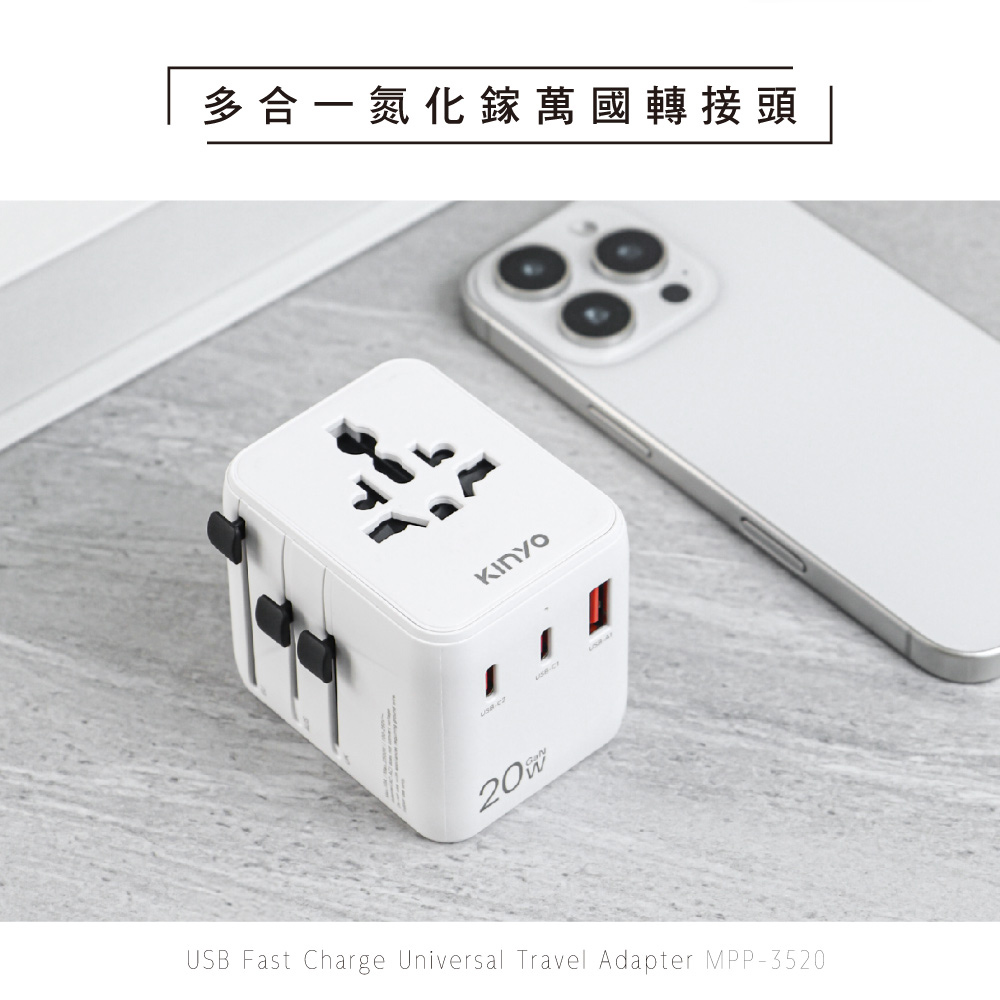 KINYO|MPP-3520 多合一雙插座萬國轉接頭 20W