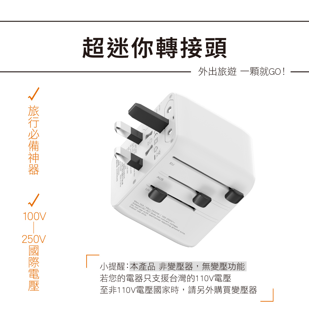 • 獨特雙AC設計,可同時轉接兩個2PIN插頭