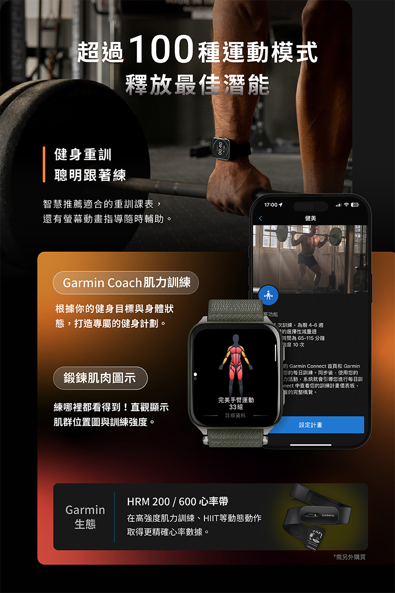 • 預載 100 種運動模式與高清全彩地圖 科學化訓練指標