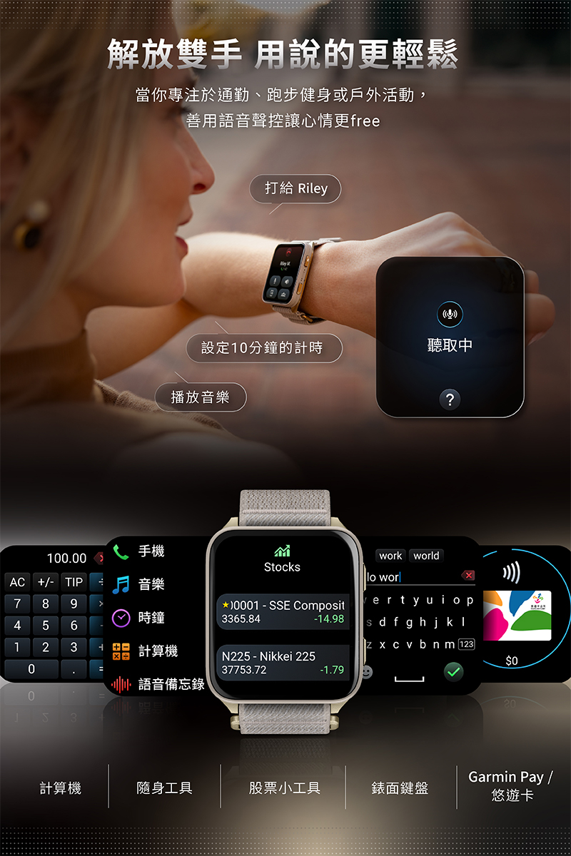 • 內建喇叭及麥克風 | 語音聲控手錶功能