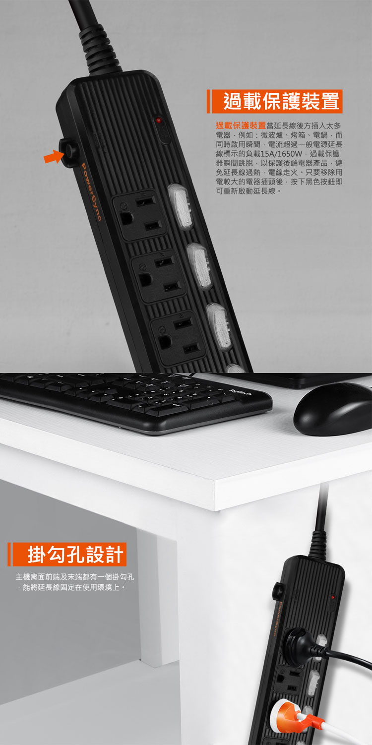PowerSync 群加|4開4插防雷擊抗搖擺延長線-1.8M 黑