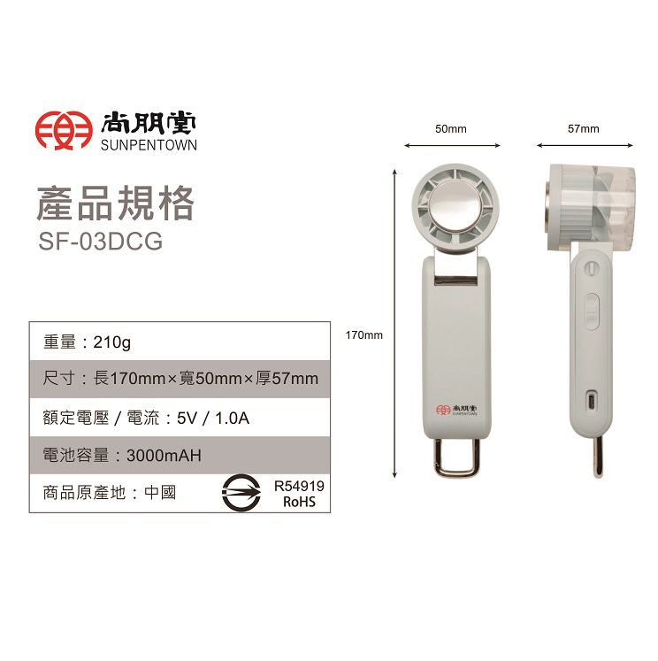 尚朋堂 手持電風扇SF-03DCG(藍)