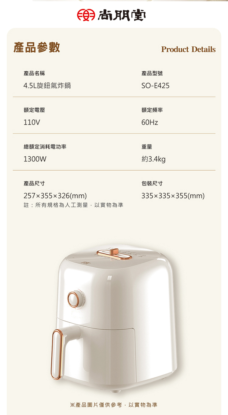 尚朋堂 4.5L旋鈕氣炸鍋SO-E425