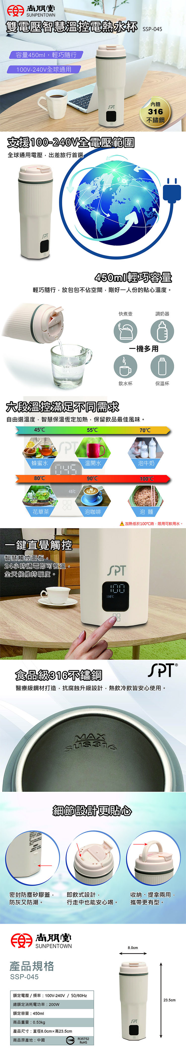 尚朋堂 雙電壓智慧溫控電熱水杯SSP-045