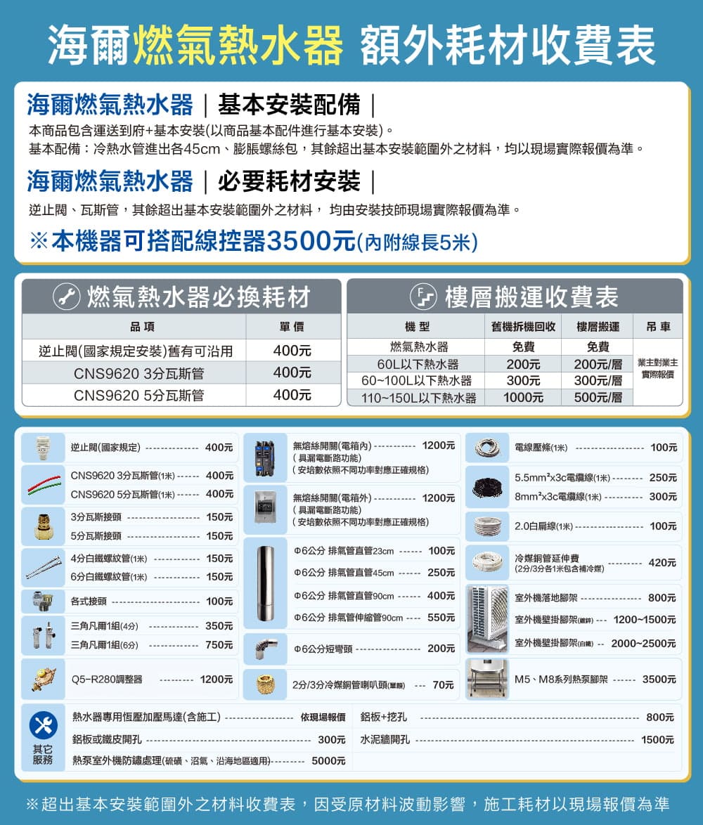 活動 凡購買「海爾雙效恆定多晶片智能控溫熱水器SA1」,加碼贈送專用線控器(市值$3,500)。 注意事項 →海爾線上保固系統請到【Haier海爾廚衛家電】官網登錄。 →請優先確認安裝環境,也可搜尋官方LINE@haierpro詢問,避免技師到場無法安裝產生空趟費600元。 →下單後依電話約定時間出貨,非快速出貨及安裝,急需安裝請透過實體通路購買,謝謝! →為保障產品的品質,海爾熱泵熱水器不開放自行安裝,皆需透過認證之技術人員安裝。 →保固限使用自來水。 商品特色 • 數位恆溫2.0 • 水量伺服器:根據水溫自動調節進水量,達到精準恆溫 • 五段分段火排:可根據水溫調節加熱效率,享受四季精準恆溫 • 旁通混和技術:防止二次開水燙傷 • 智能風壓調節系統:適應各種環境確保在極端天氣也能正常運作 • 雙芯片控制:雙重安全防護,降低錯誤率、提高用戶品質 •多重安全防護:安全自檢/過熱/熄火/溫度/電壓過載/瓦斯管線/風壓/燃燒/智能自檢/防凍/60分鐘停機 • 室外安裝:無須安裝煙管,直接排煙口排氣