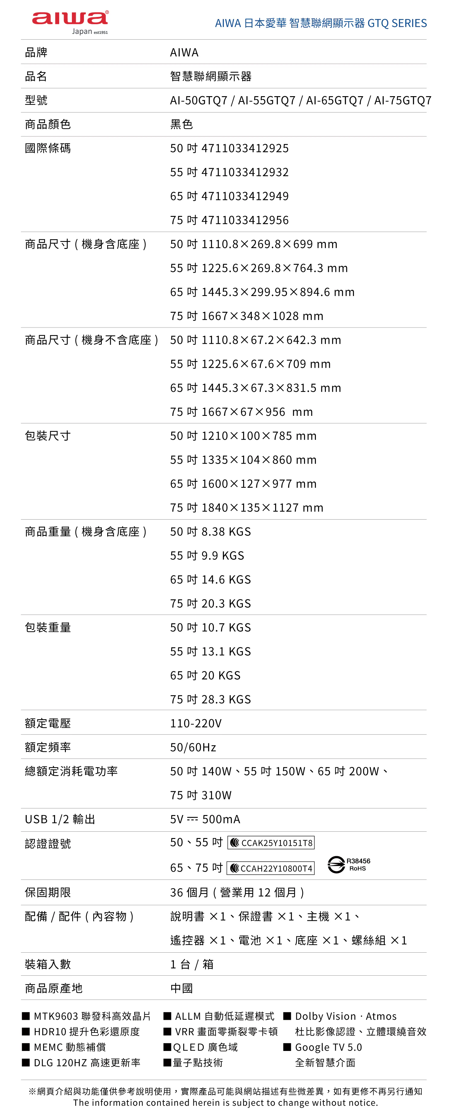 NCC編號:CCAK25Y10151T8 BSMI編號:R38456 國際條碼:4711033412932