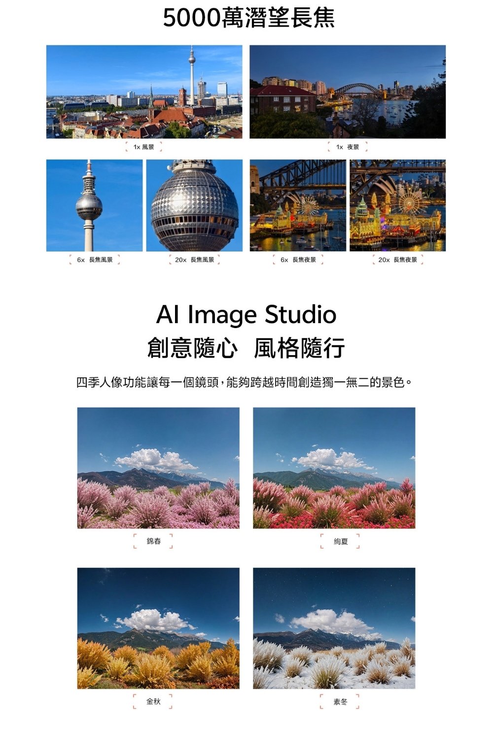 • 前鏡/後鏡相素:前置鏡頭: 3,200 萬畫素 後置鏡頭: 5,000 萬畫素主鏡頭 + 5,000 萬畫素鏡頭 +5,000 萬畫素鏡頭