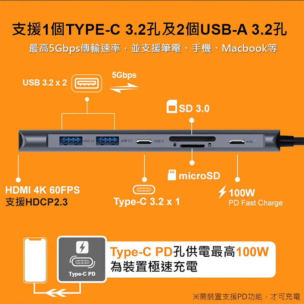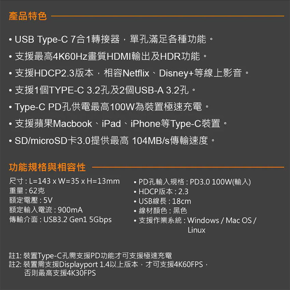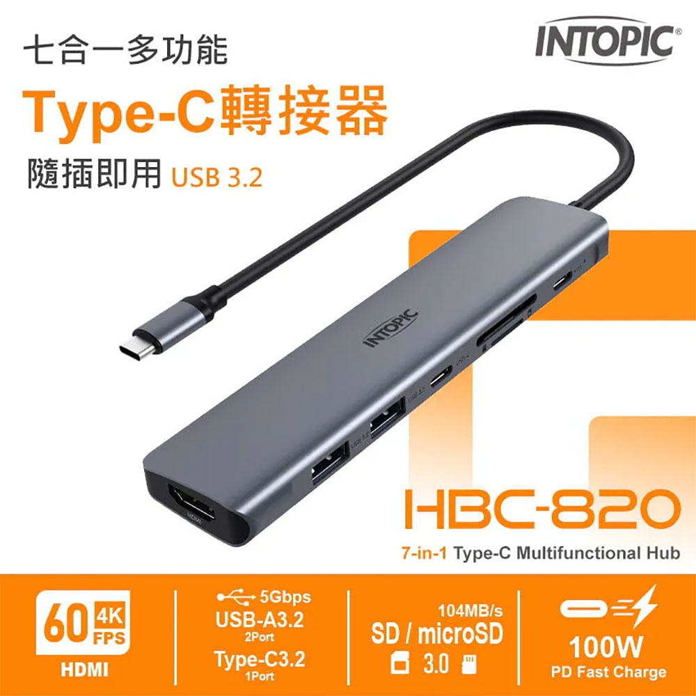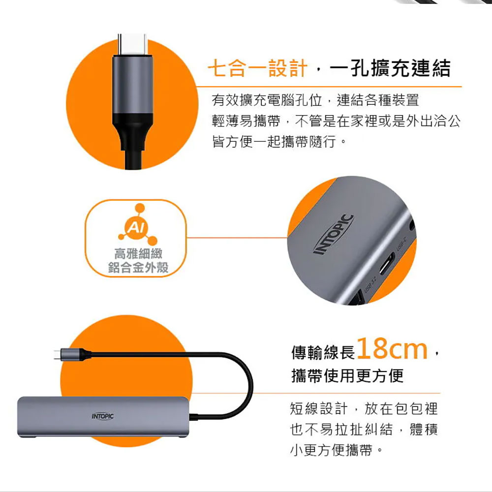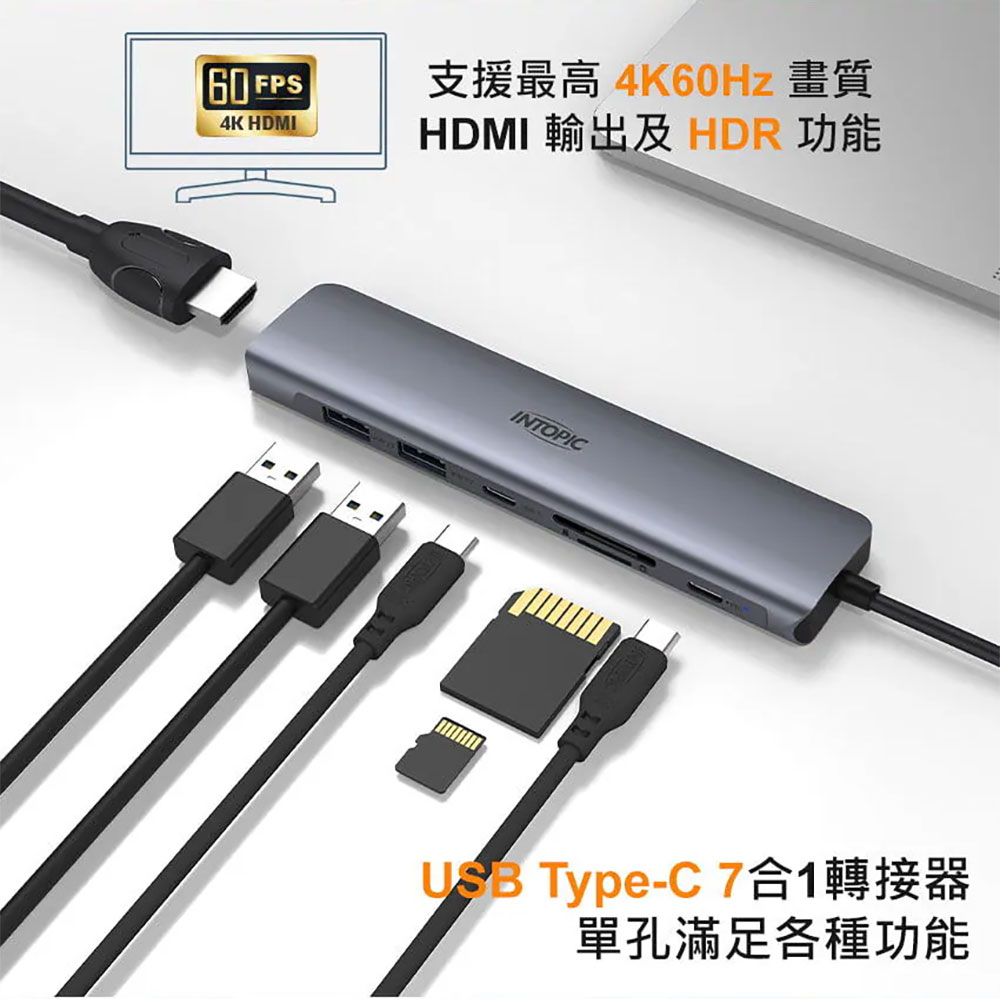 【INTOPIC 廣鼎】HBC-820 七合一多功能Type-C轉接器