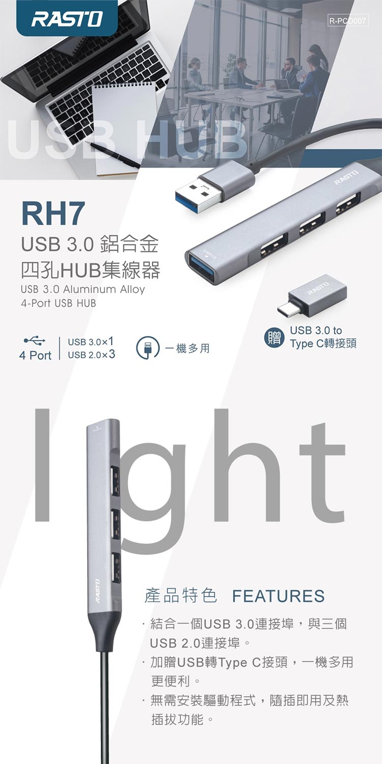 RASTO|RH7 USB3.0 四孔HUB集線器