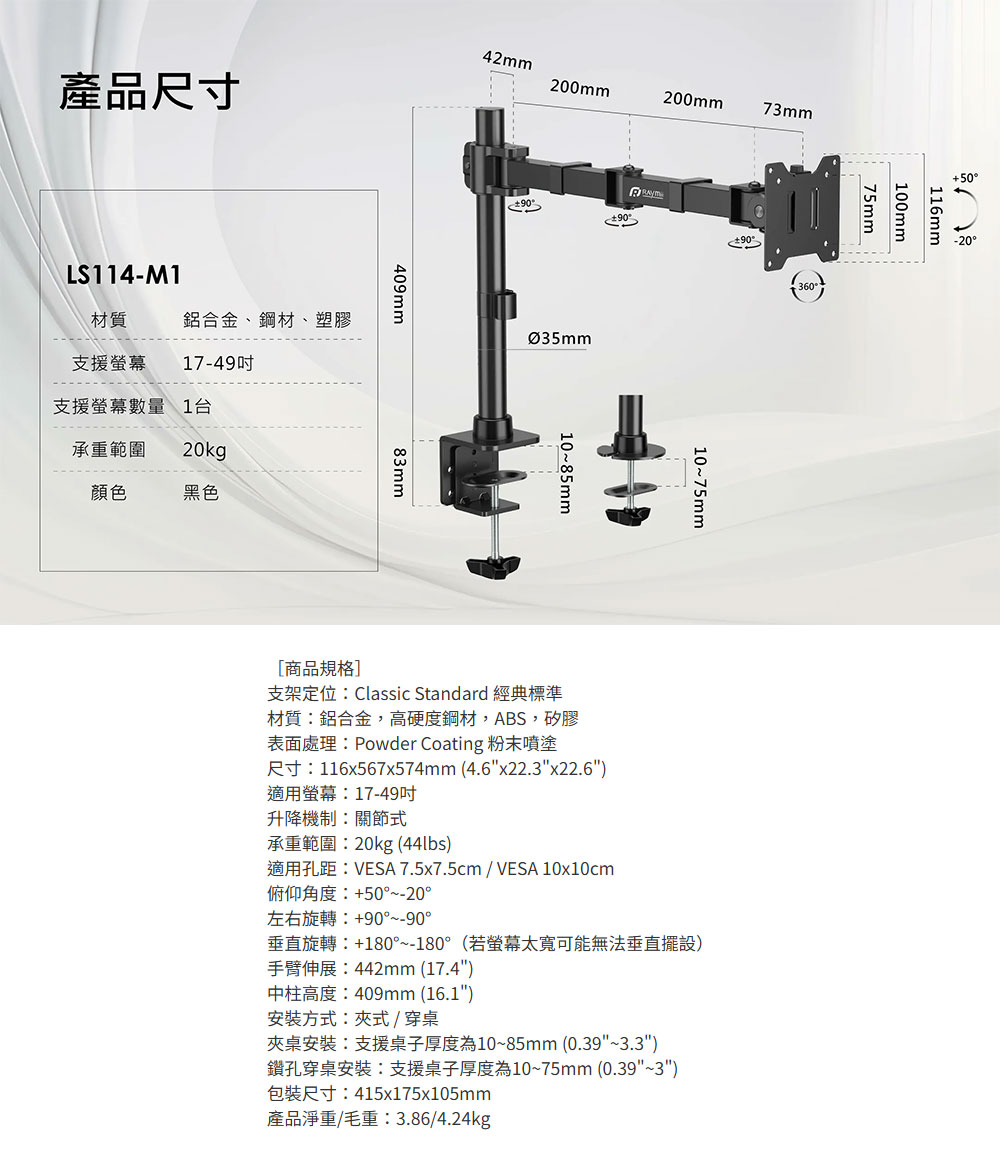 Raymii 瑞米|LS-114-M1 MOJO系列 高承重螢幕支架