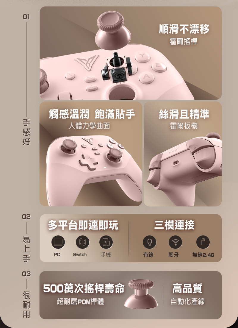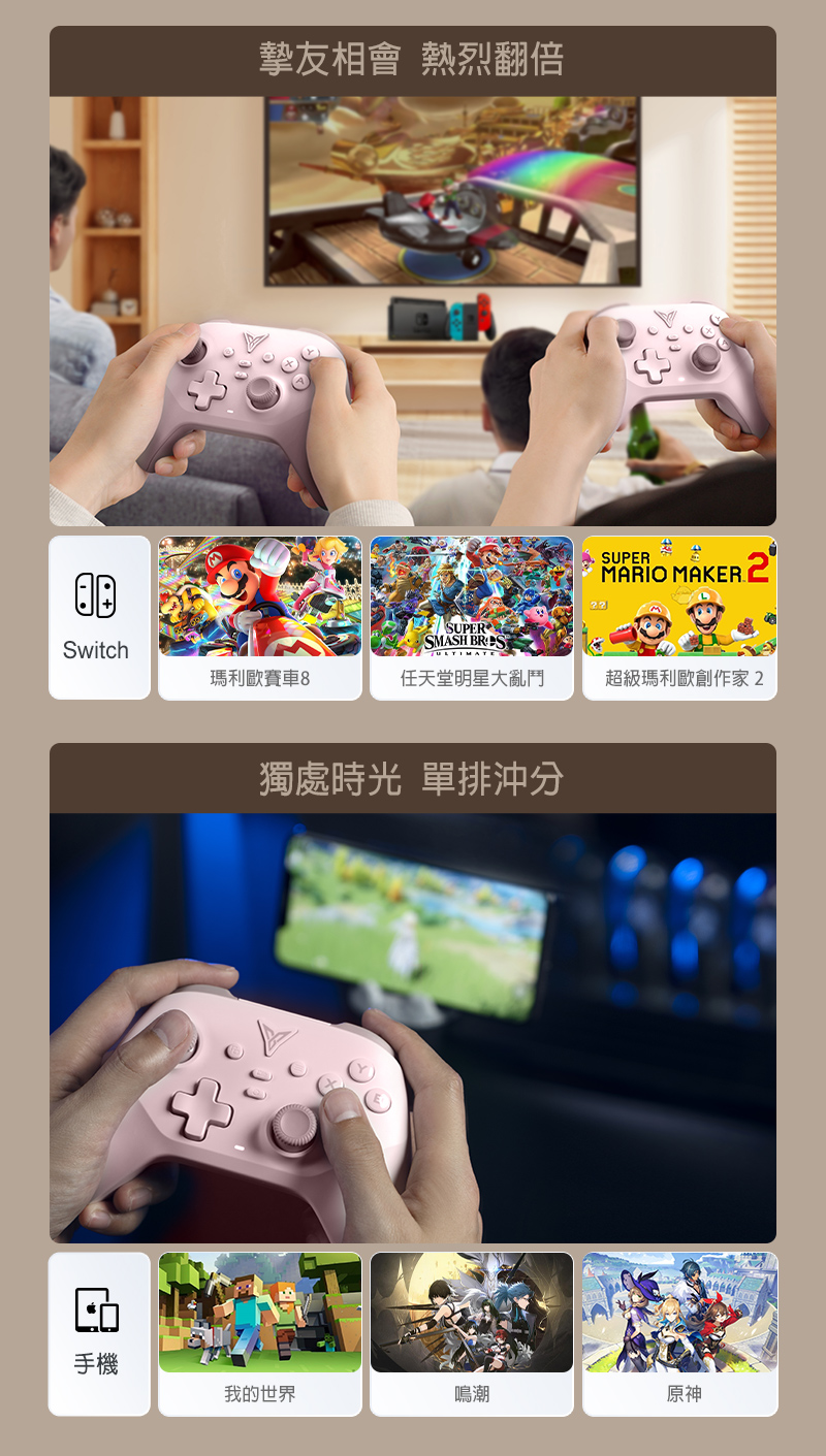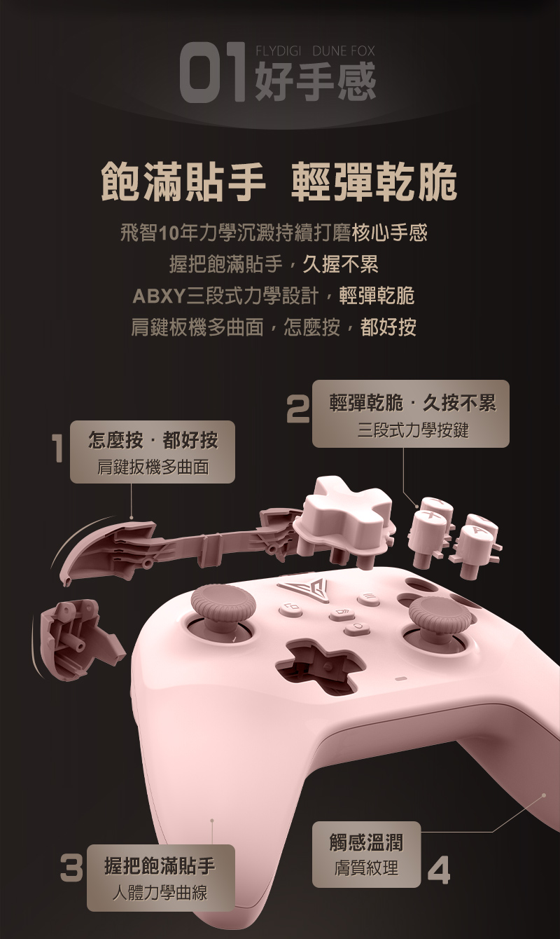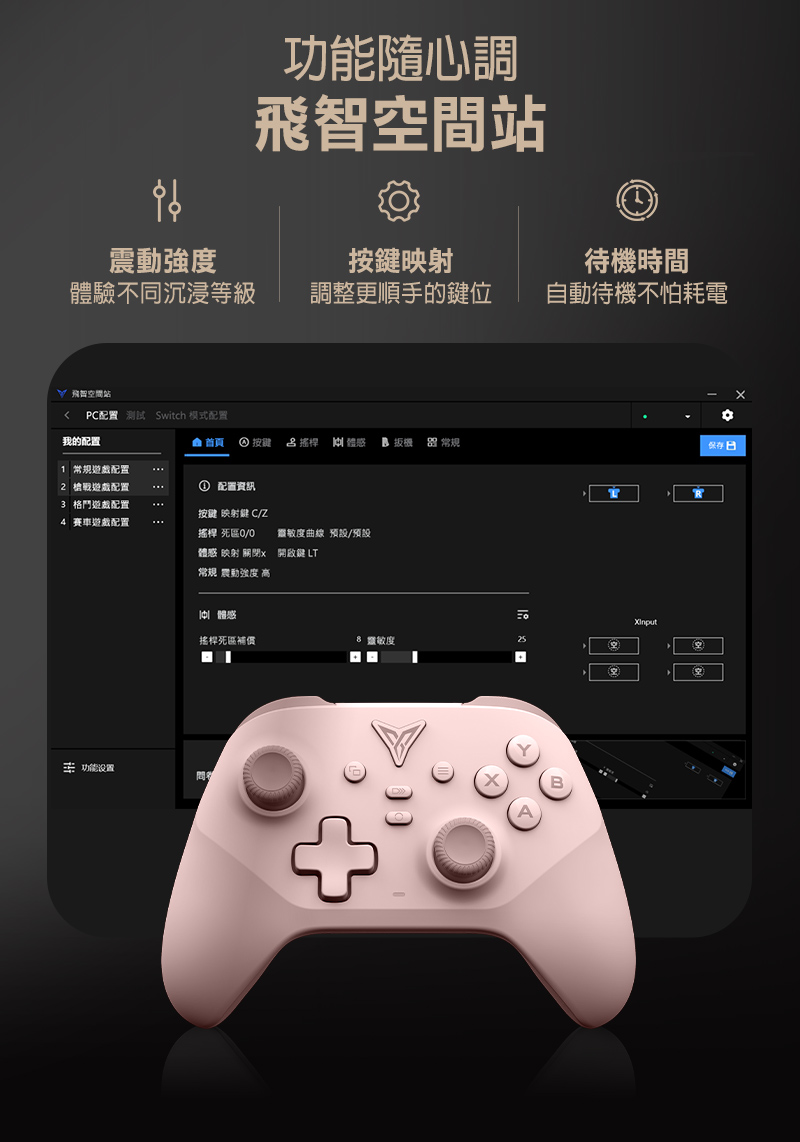 【特色說明】 ●升級安卓系統可以按鍵映射 ●升級採用飛智創新自研的槓桿搖桿 ●升級1000Hz高輪詢率,超低延遲更跟手 ●0.1MM霍爾線性扳機,操控順滑更精準 ●靜音導電膠大按鍵,面積增大10% ●非對稱急停馬達,原廠配重震感細膩 ●兩顆巨集大背鍵,輕鬆連招不易誤觸 ●高精度六軸體感映射,瞄準快又狠 ●專利轉軸十字鍵,靈敏戳招不連黏 ●多平台支援,PC/NS/手機/TV都能玩