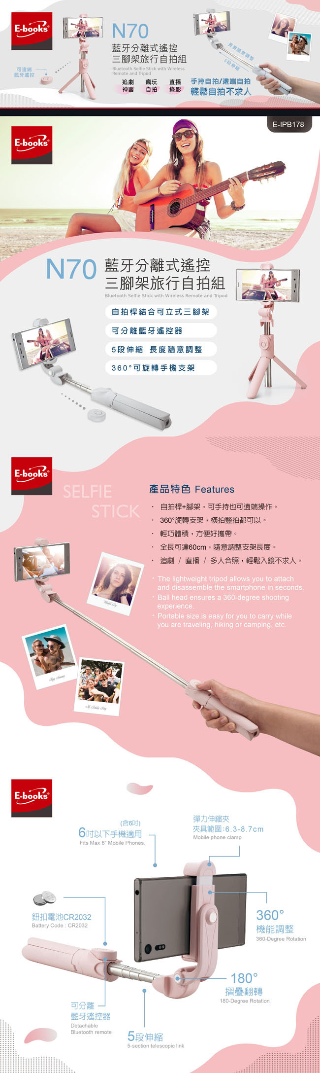 E-books|N70 藍牙分離式遙控三腳架(灰)
