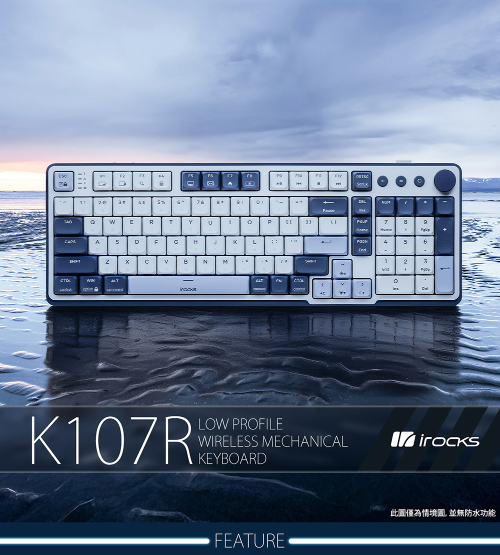 【iRocks】K107R 無線三模機械鍵盤|奶茶矮軸/海灣藍