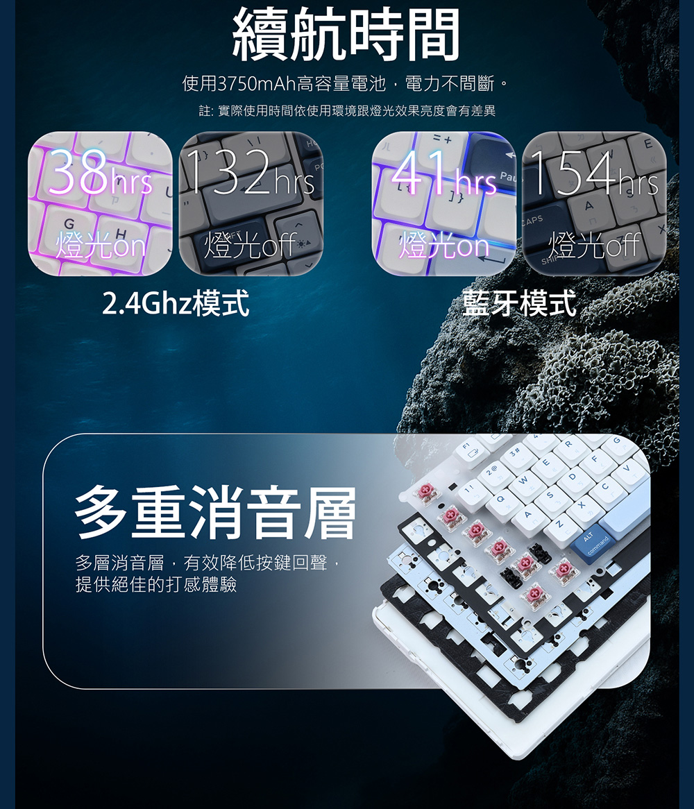 • 特色:多層消音層,有效降低按鍵回聲,提供絕佳的打感體驗