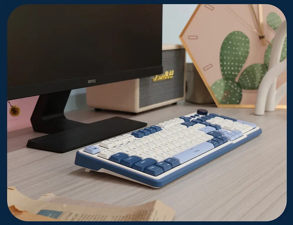 iRocks|K107R 無線三模機械鍵盤|奶茶矮軸/海灣藍色