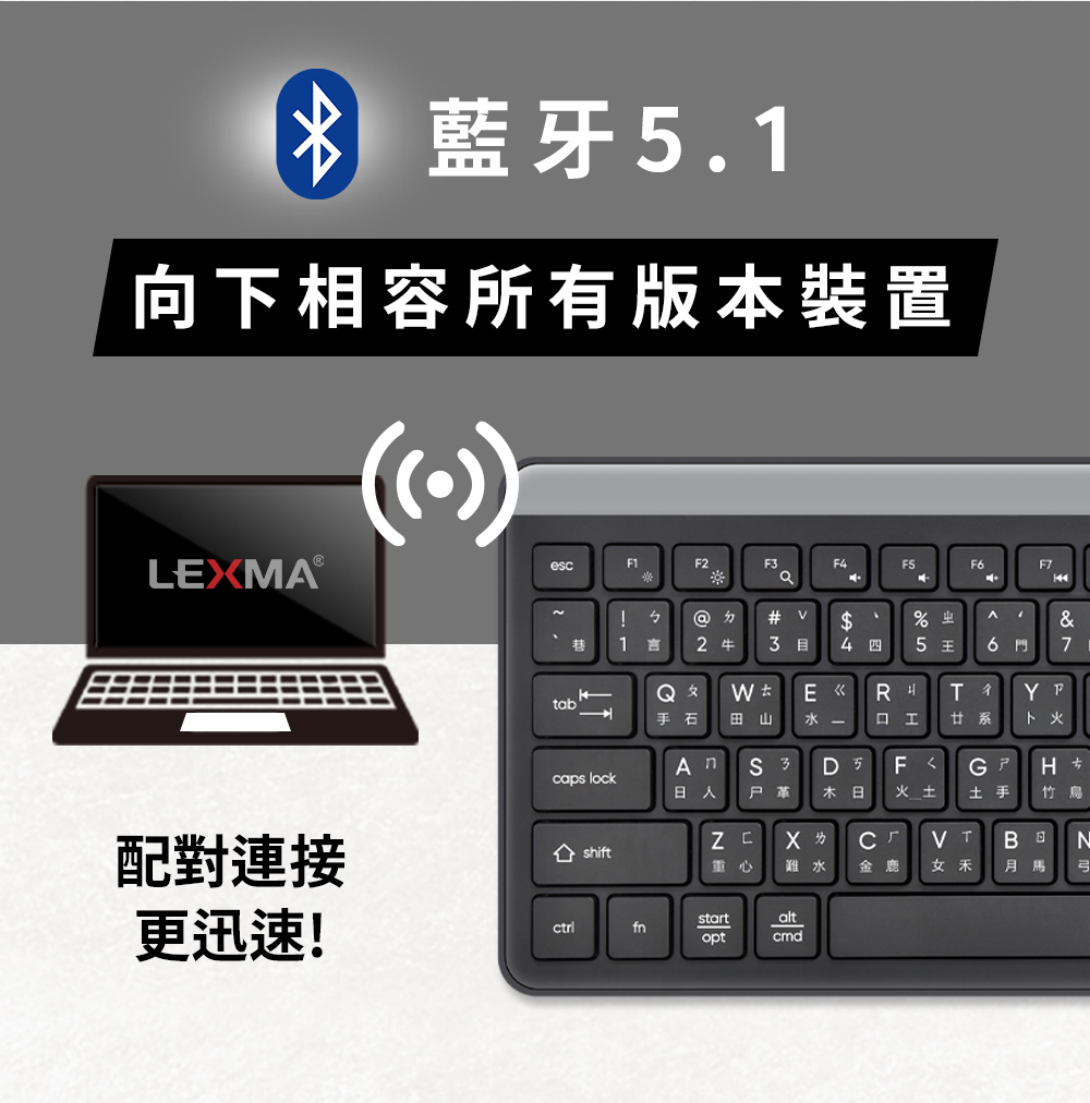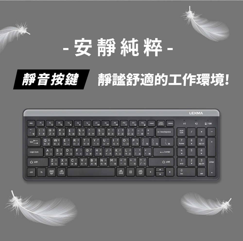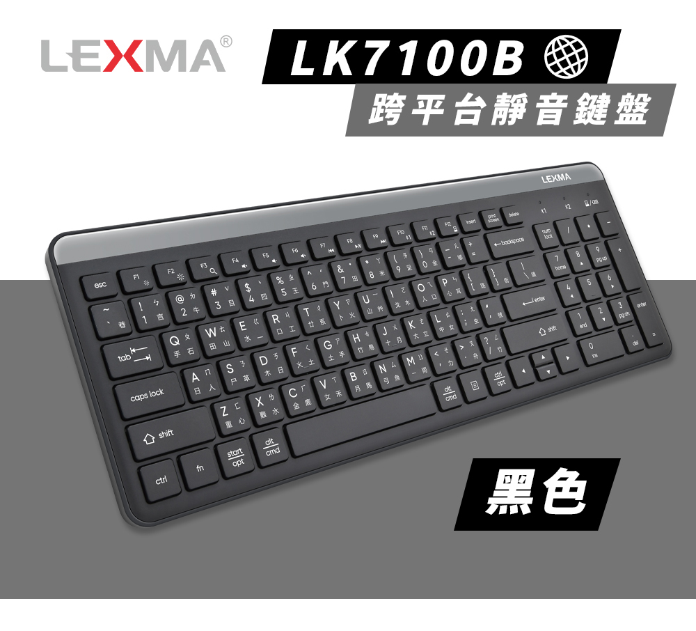 LEXMA 雷馬|LK7100B 無線跨平台 藍牙靜音鍵盤 黑色