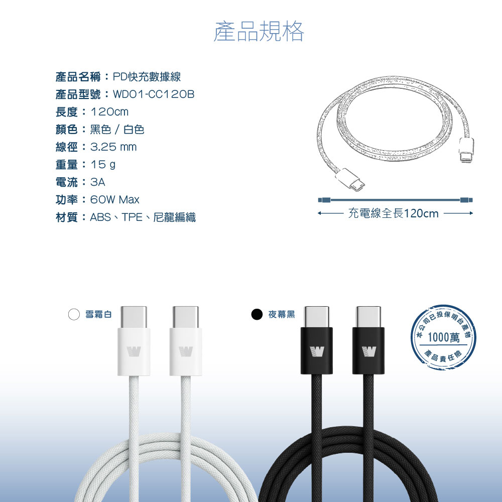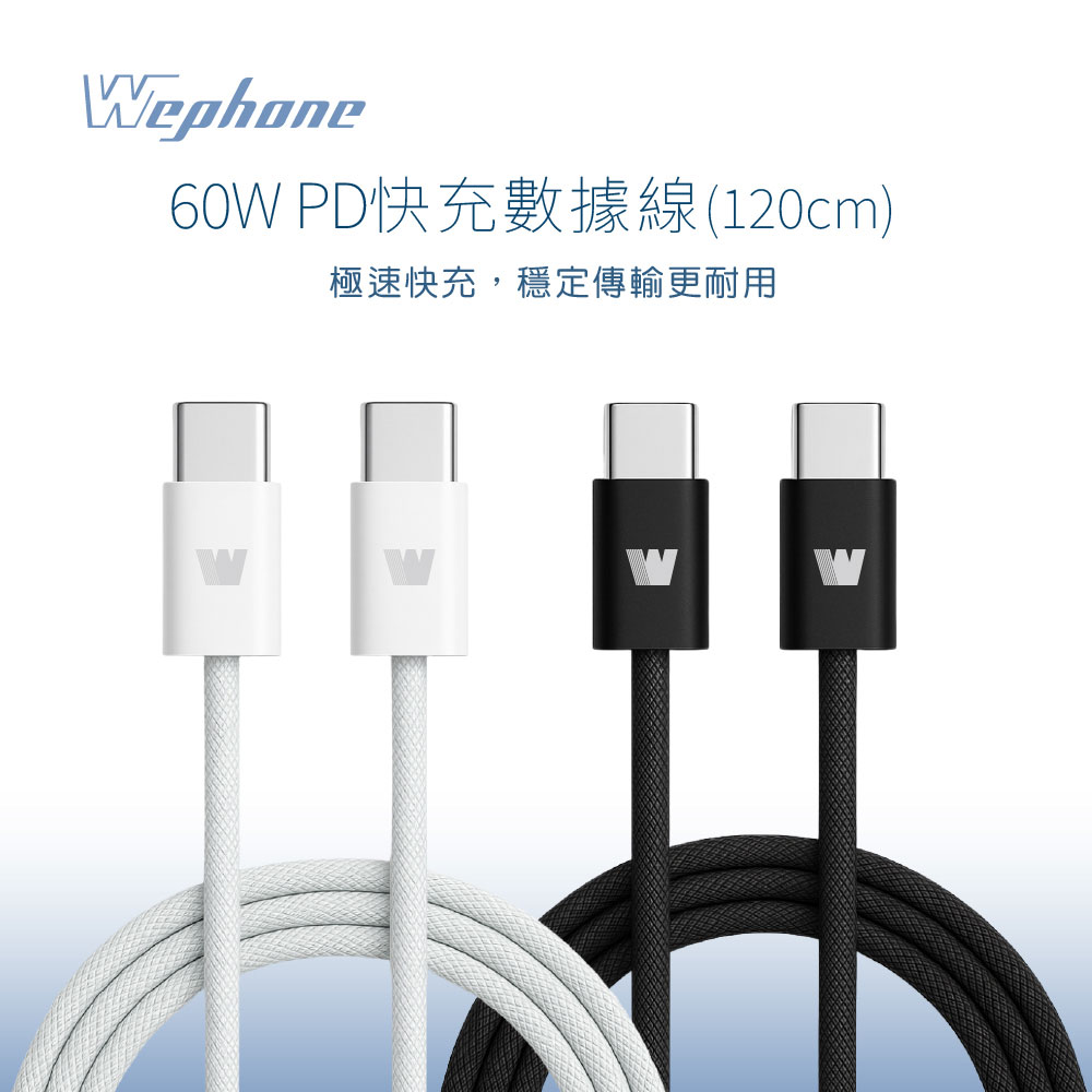 WEPHONE|USB-C to USB-C 60W PD快充數據線-夜幕黑/120cm