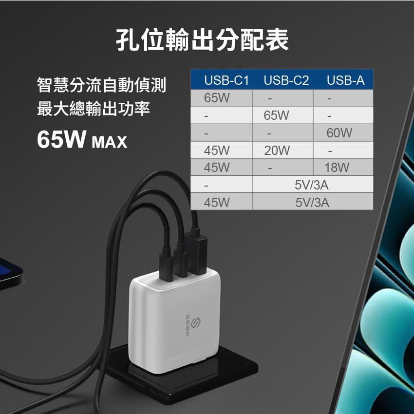 【SEEK】P651-BK 65W GAN 充電器 黑色