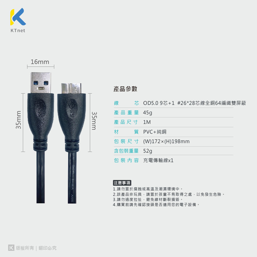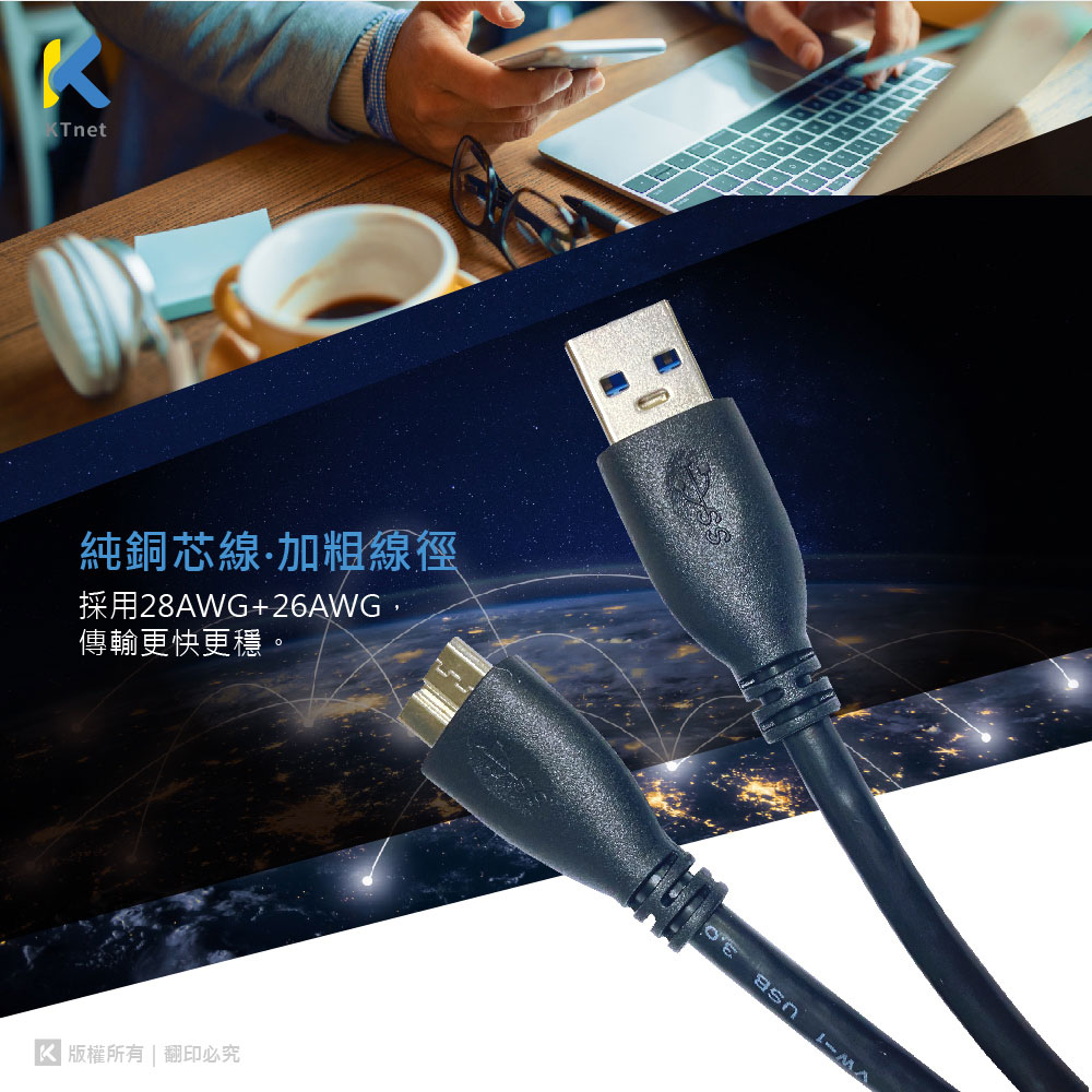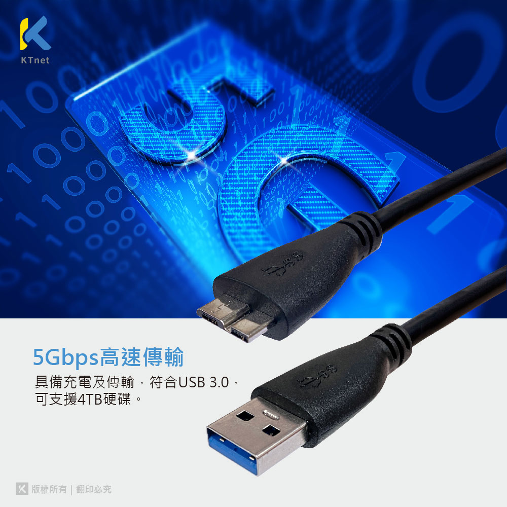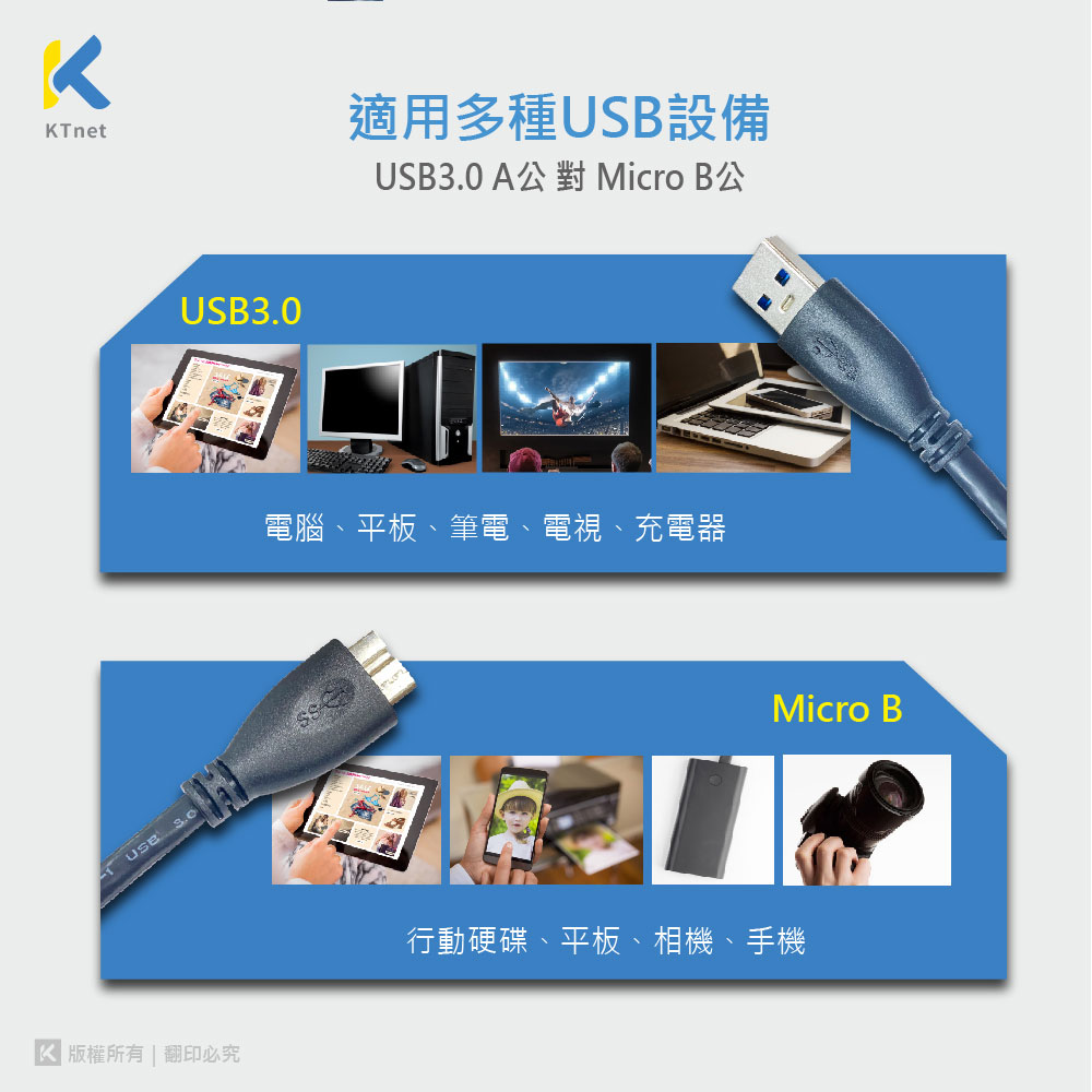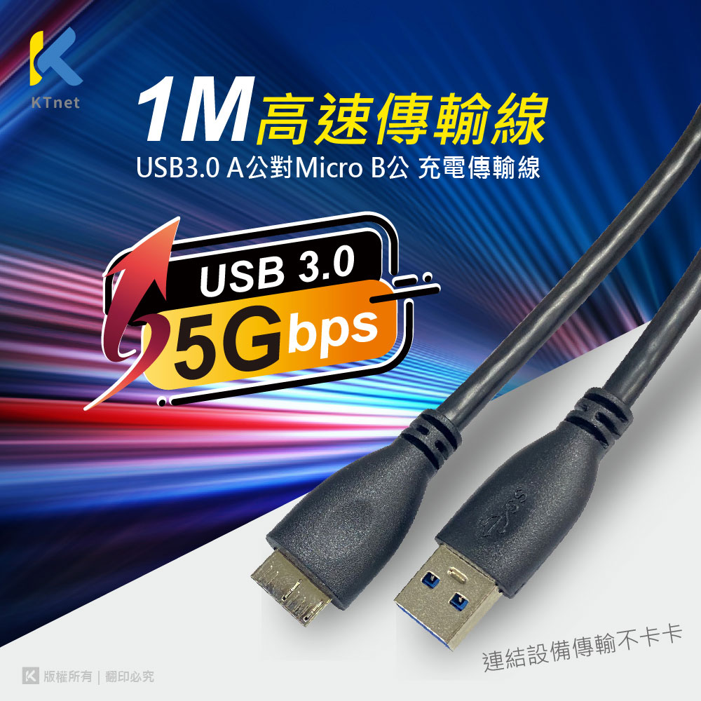 KTNET|USB3.0 A公 對 Micro B公傳輸線-1M