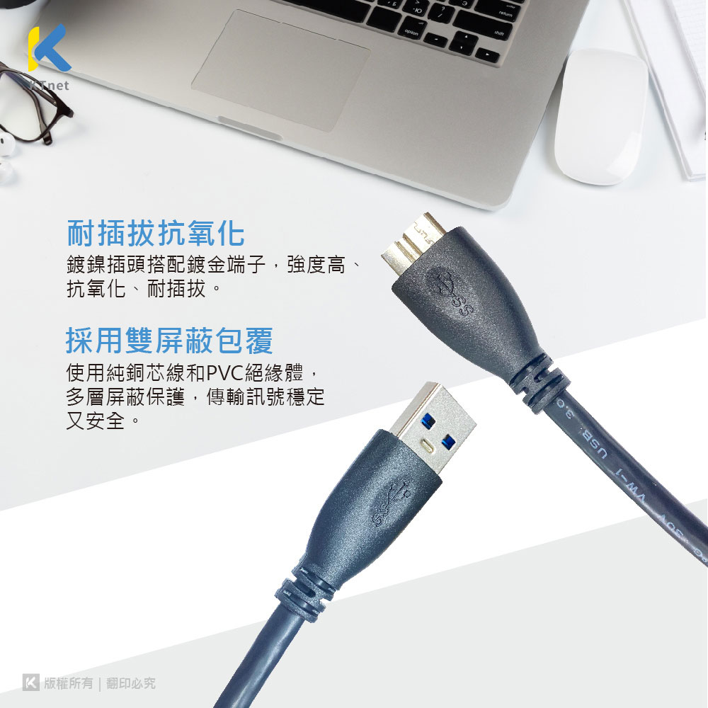 【KTNET】USB3.0 A公 對 Micro B公傳輸線-1M