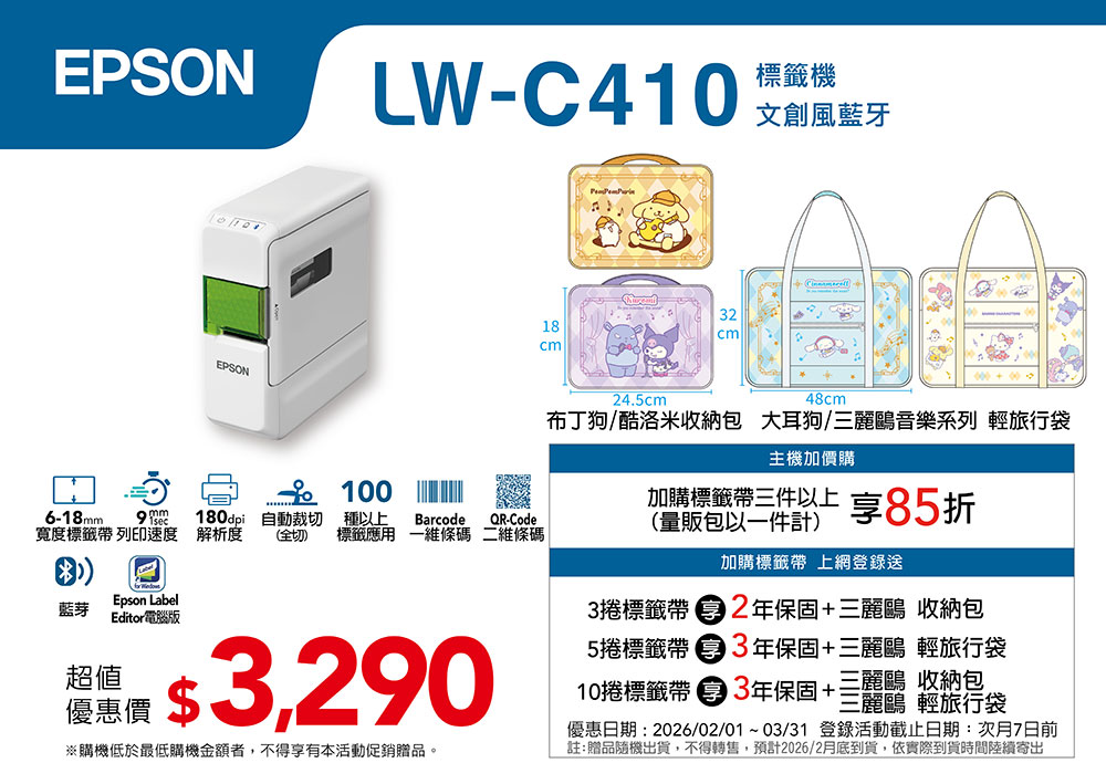 【EPSON 愛普生】LW-C410 文創風家用藍芽手寫標籤機