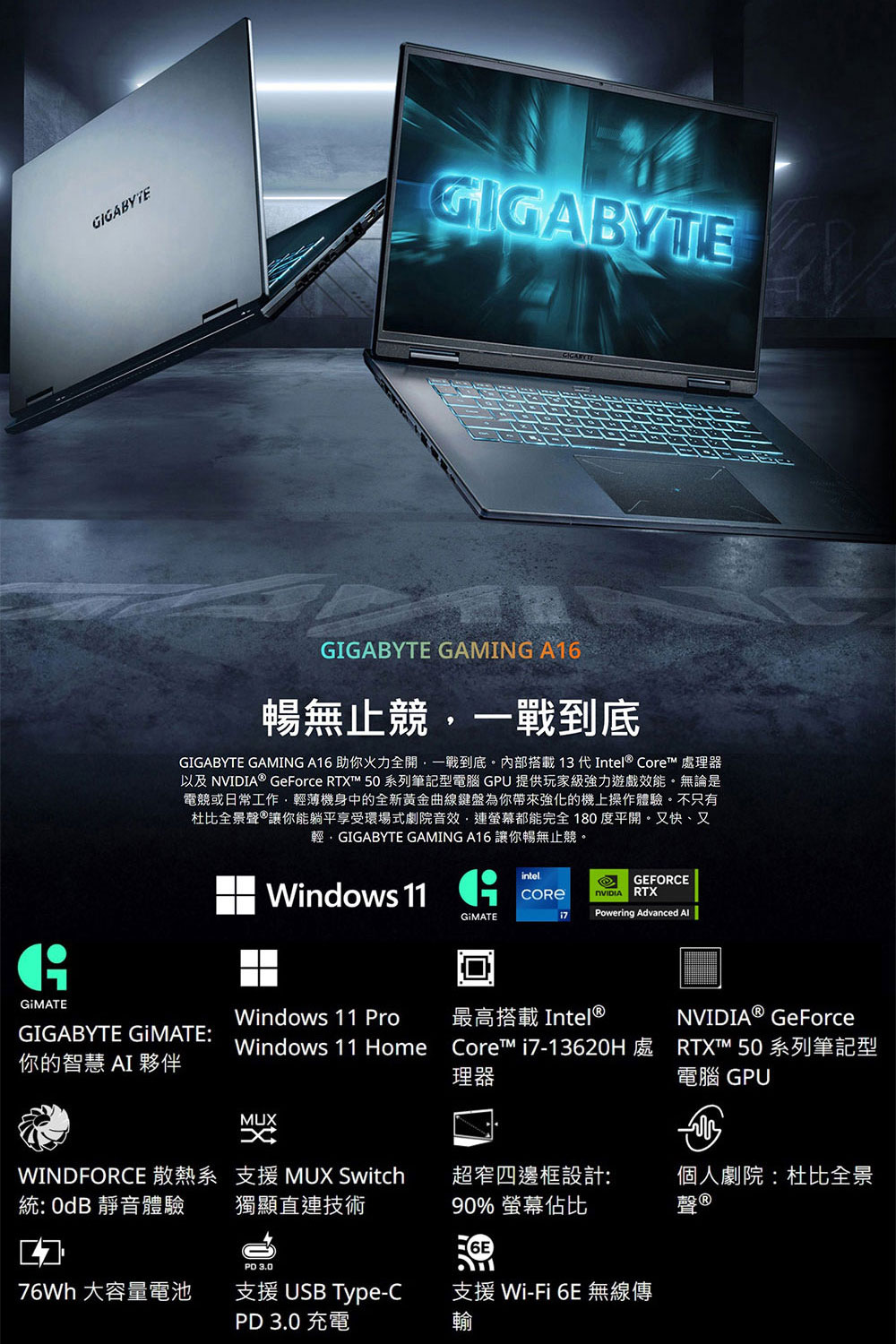 【GIGABYTE 技嘉】GAMING A16 CWHI3TW894SH 16吋 i7 RTX5070 電競筆電