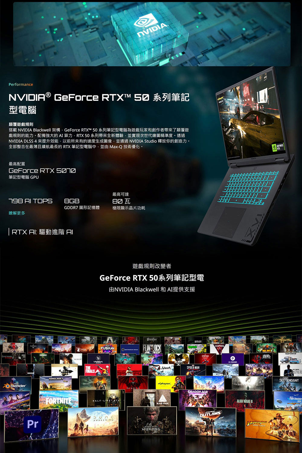 • 顯示卡:NVIDIA GeForce RTX 5070 Laptop GPU 8GB GDDR7