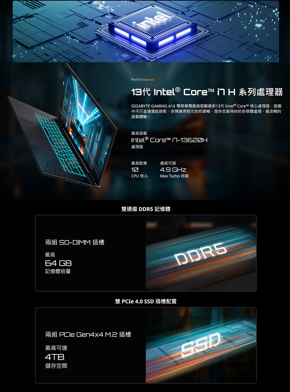 • 處理器:Intel Core i7-13620H 核心處理器 4.9 GHz
