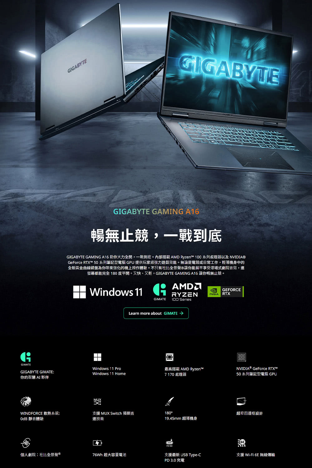 GIGABYTE 技嘉|GAMING A16 5VHP3TW894SH 16吋 R7 RTX5060 電競筆電