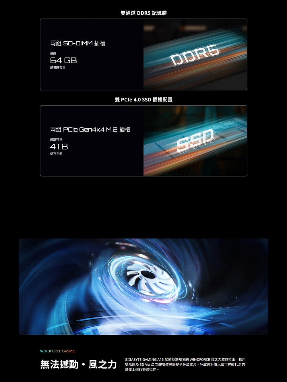 • 硬碟容量:PCIe Gen4 SSD 512G 雙插槽最高4TB