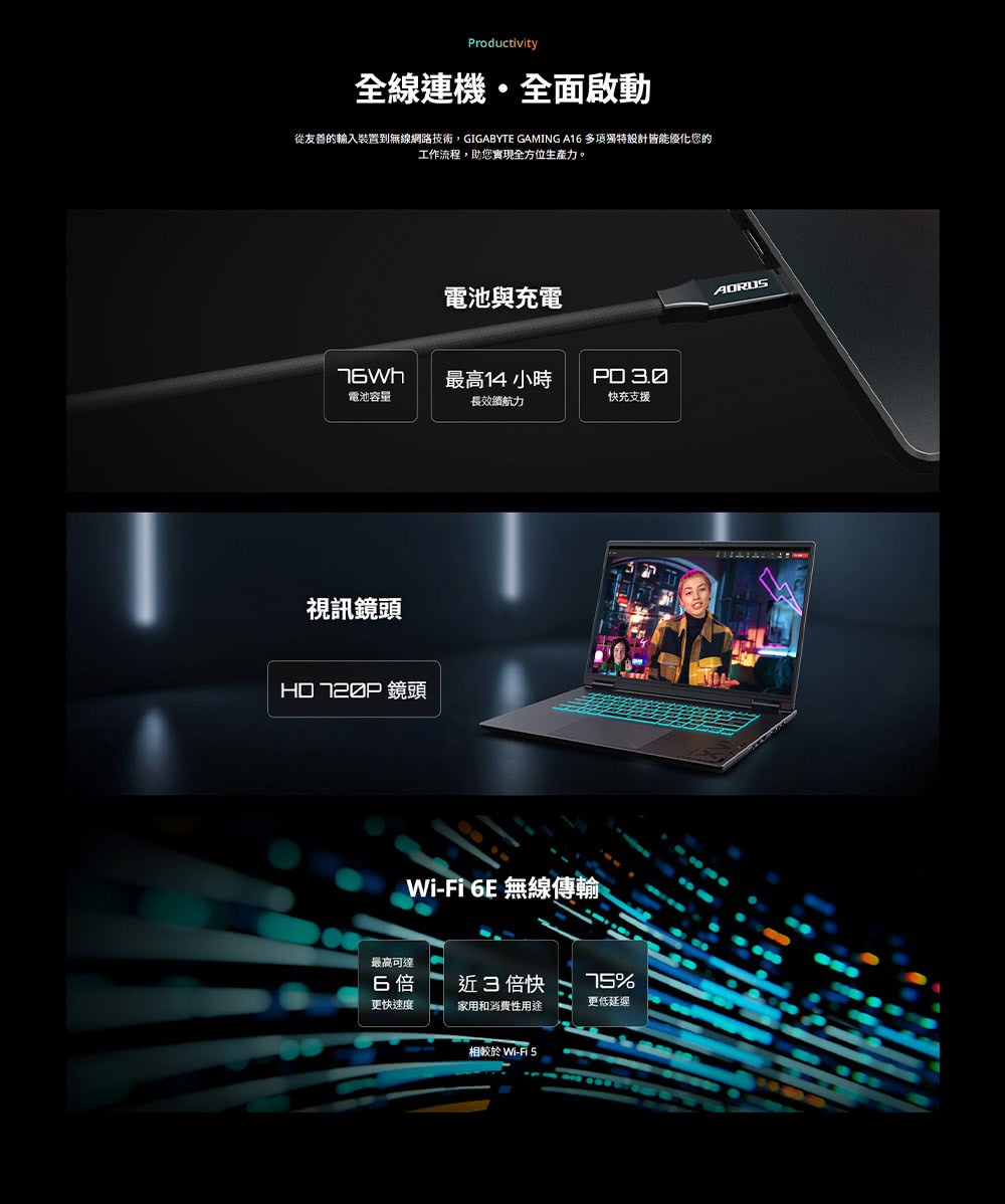 • 連線方式:Wi-Fi 6E Wireless (802.11ax 2x2) Bluetooth V5.3
