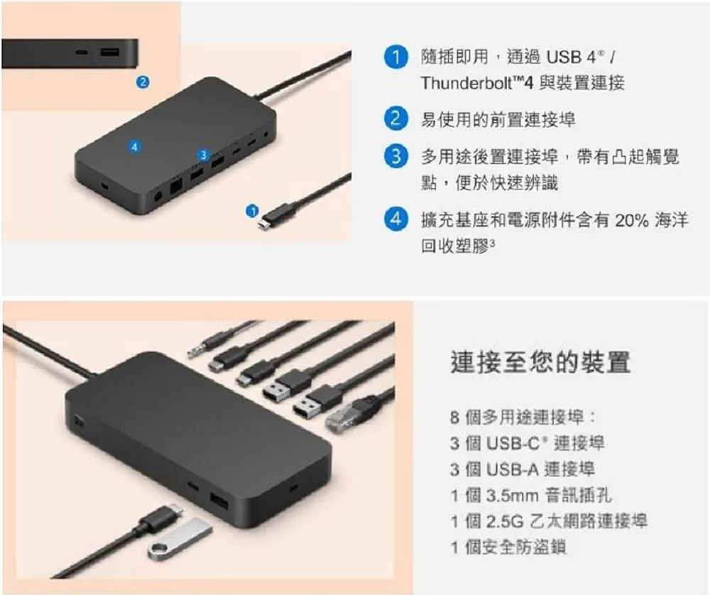 Microsoft 微軟|Surface Thunderbolt 4 擴充基座