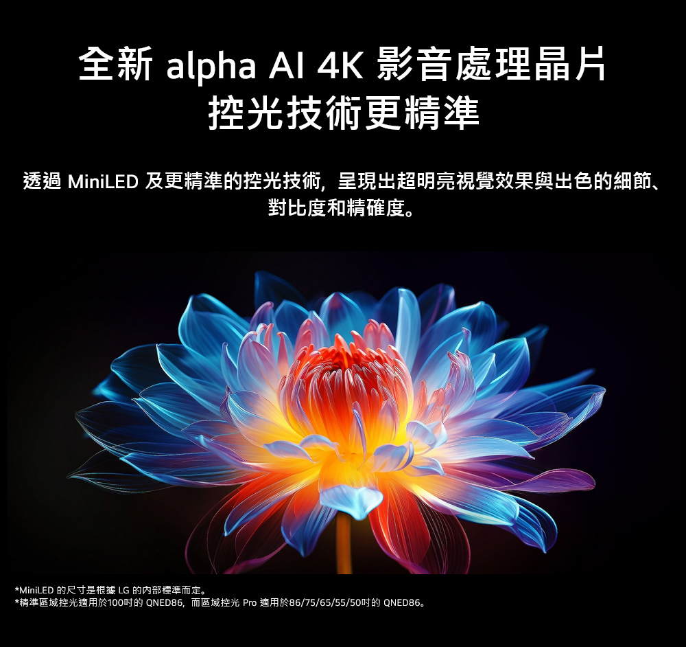 • 特色:智慧增亮引擎提升亮度/Alpha 8 第2代 AI 4K
