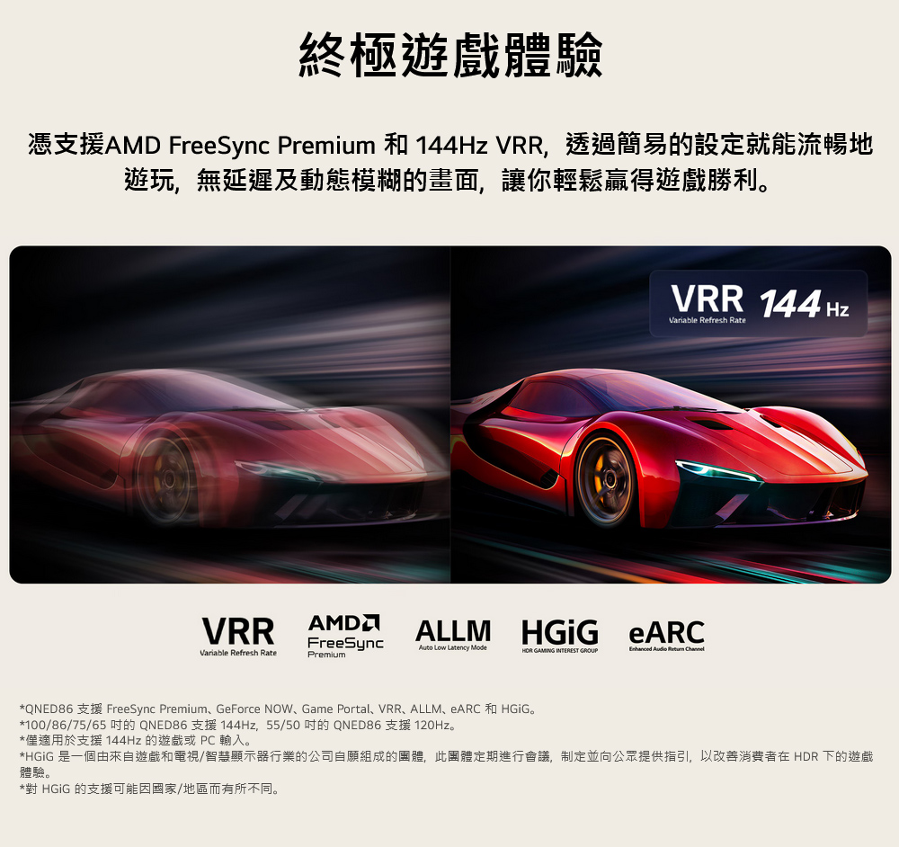 • 特色:支援杜比視界及全景聲/ 9.1.2聲道/20W/ 120HZ (VRR144HZ)