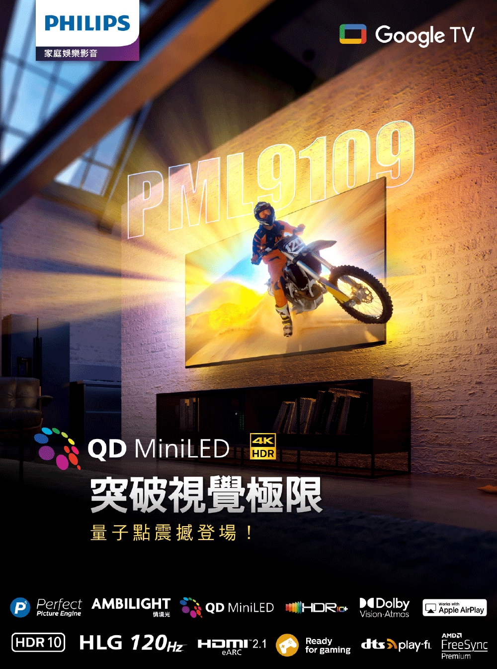 飛利浦|85PML9109 85型 4K QD Mini LED Google TV 智慧顯示器|含基本安裝