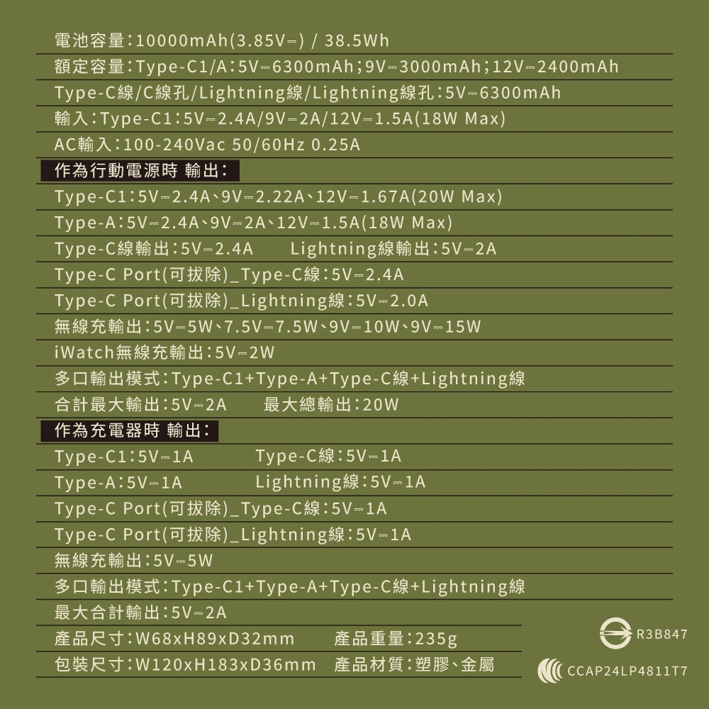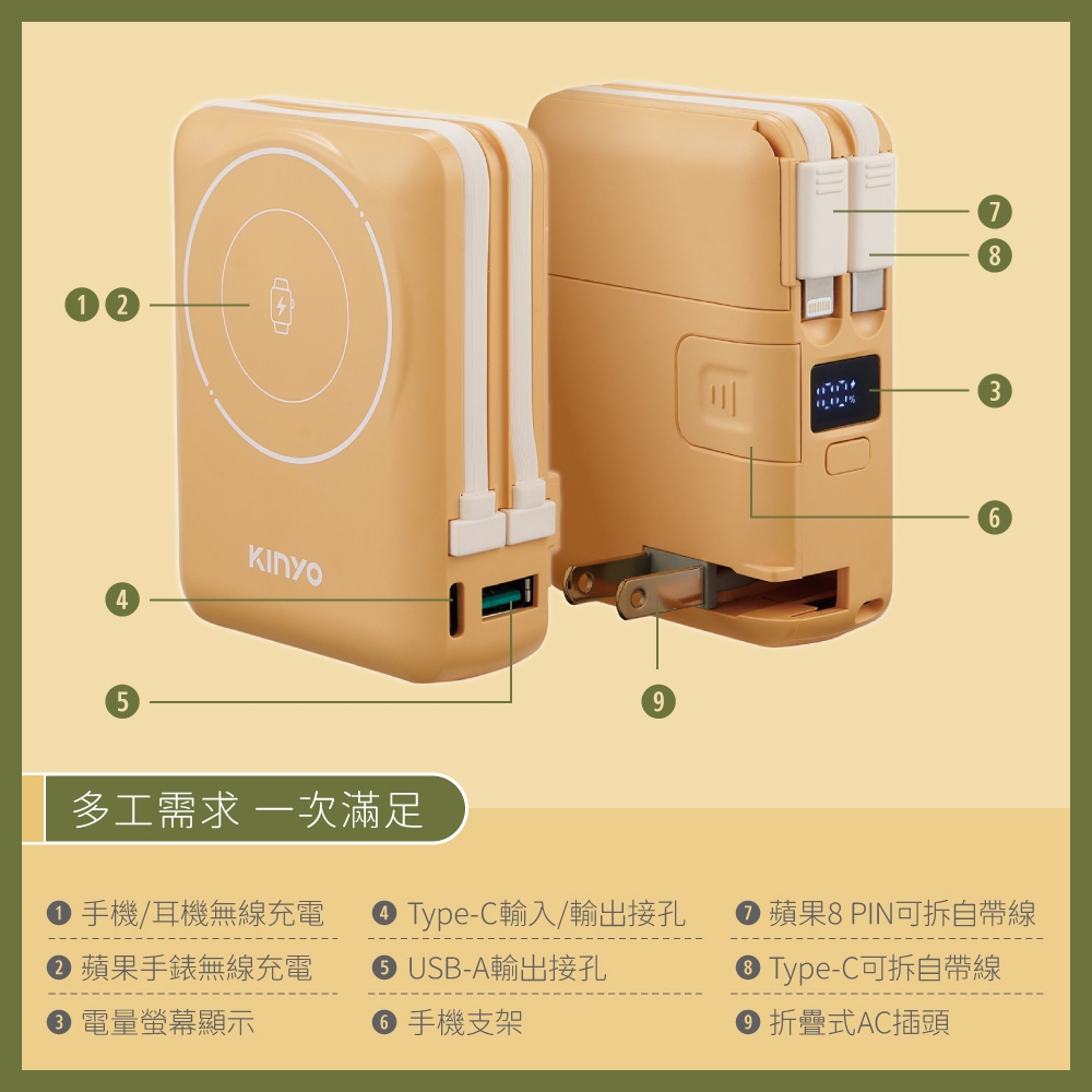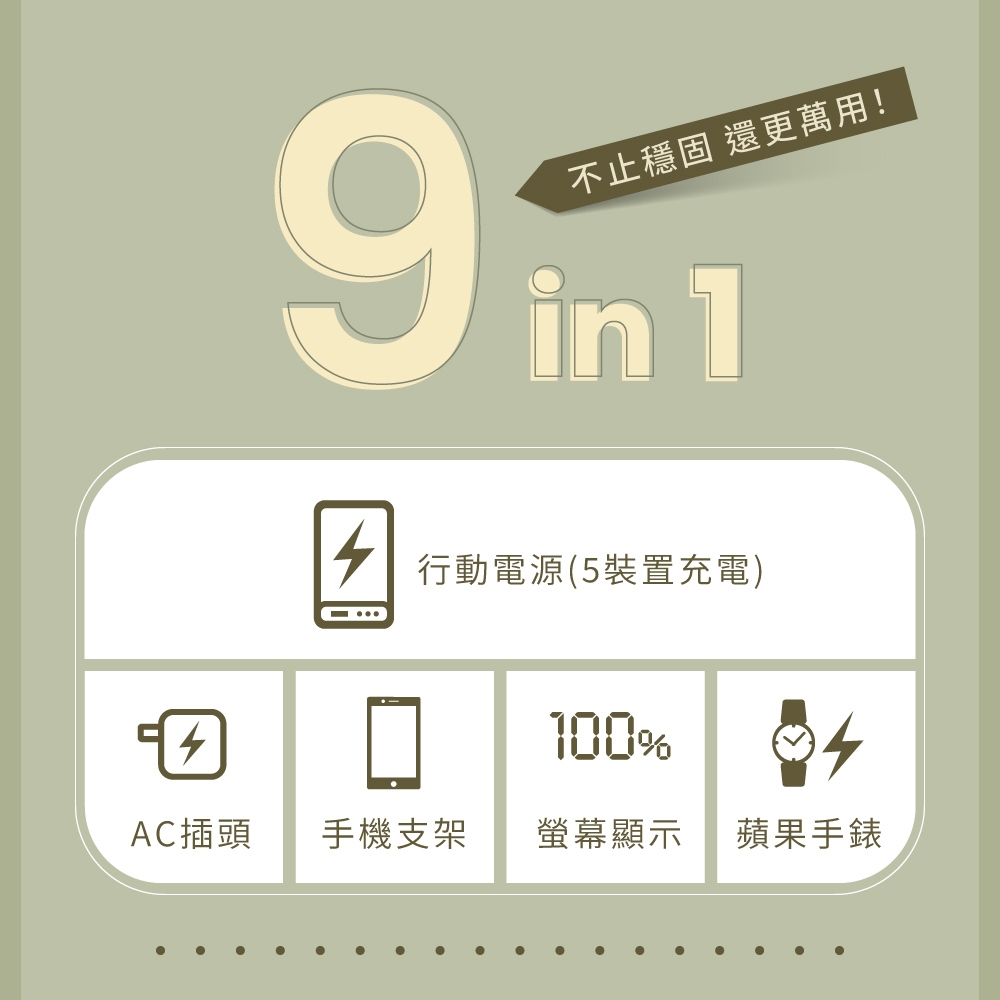 正面品名: 9 in 1自帶AC萬用防爆行動電源