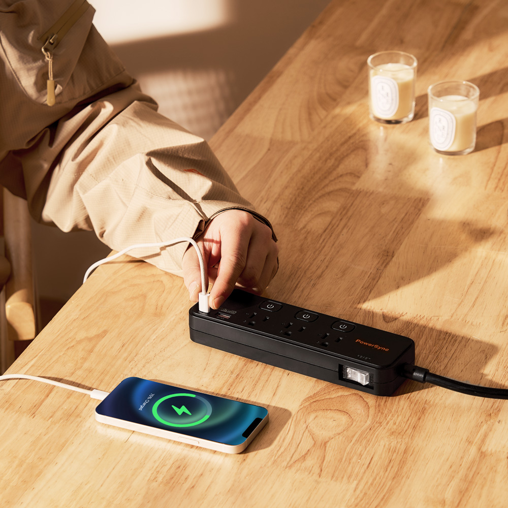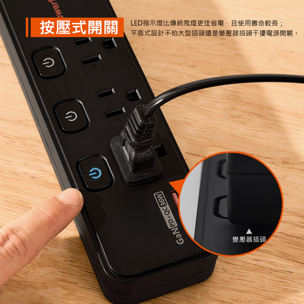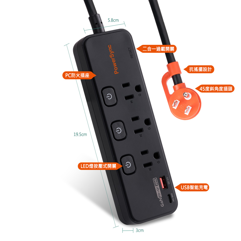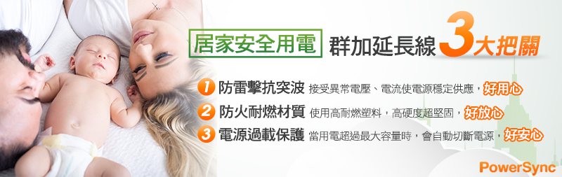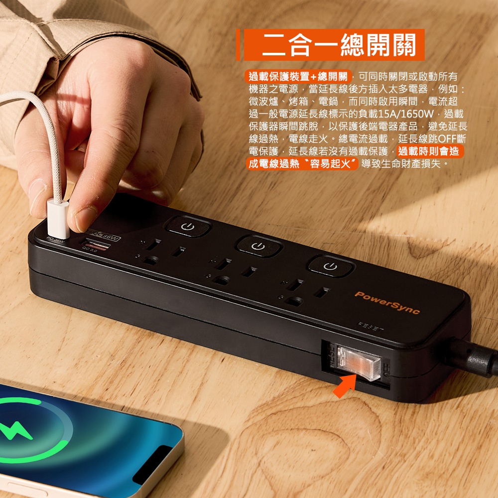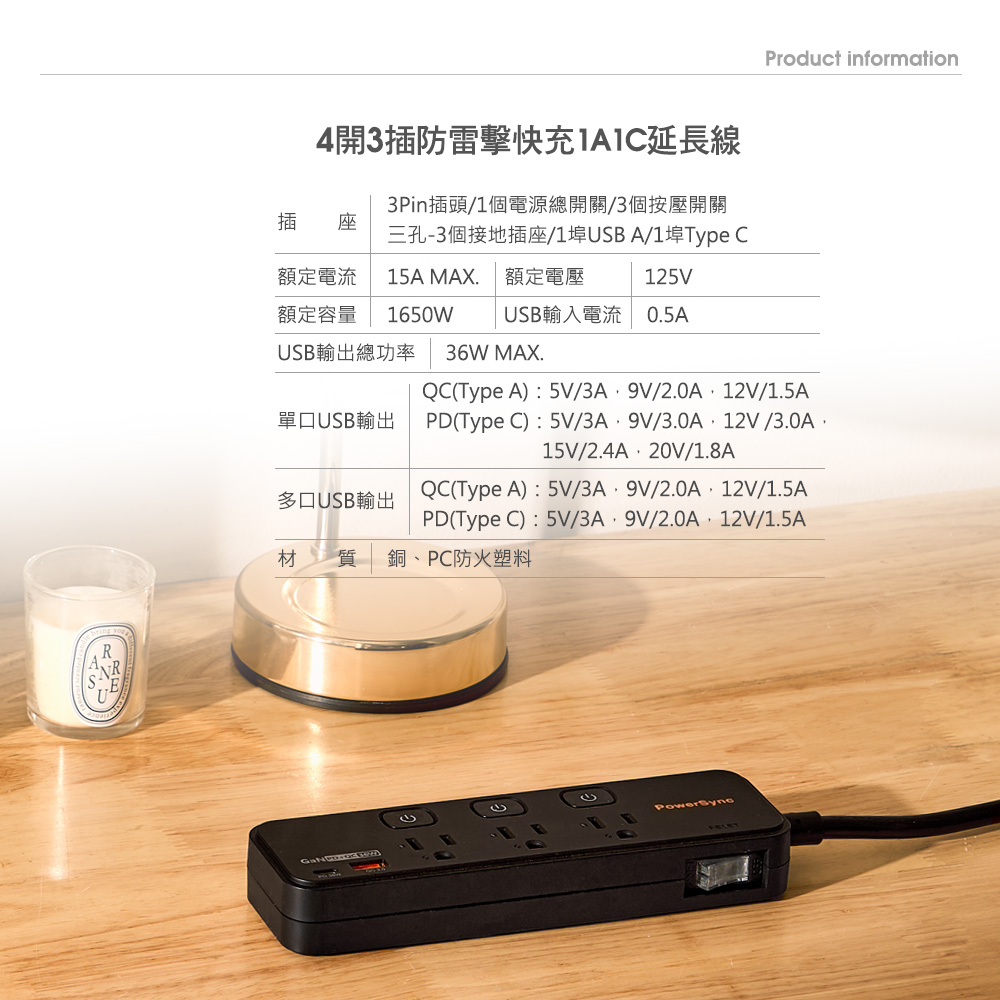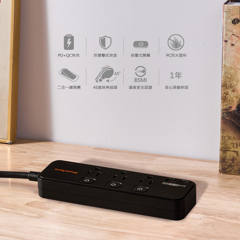PowerSync 群加|4開3插 防雷擊1A1C 延長線1.8M