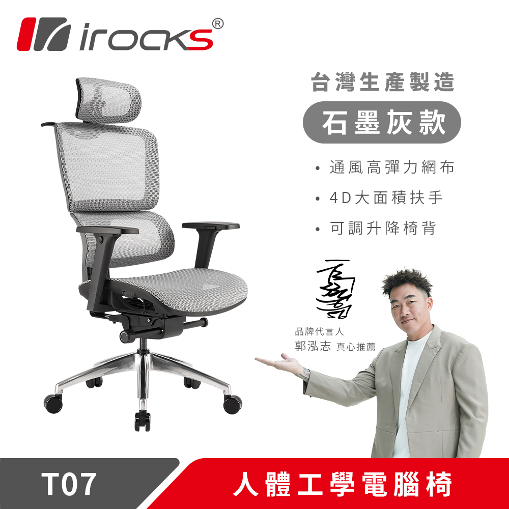 【iRocks】T07 人體工學椅 石墨灰